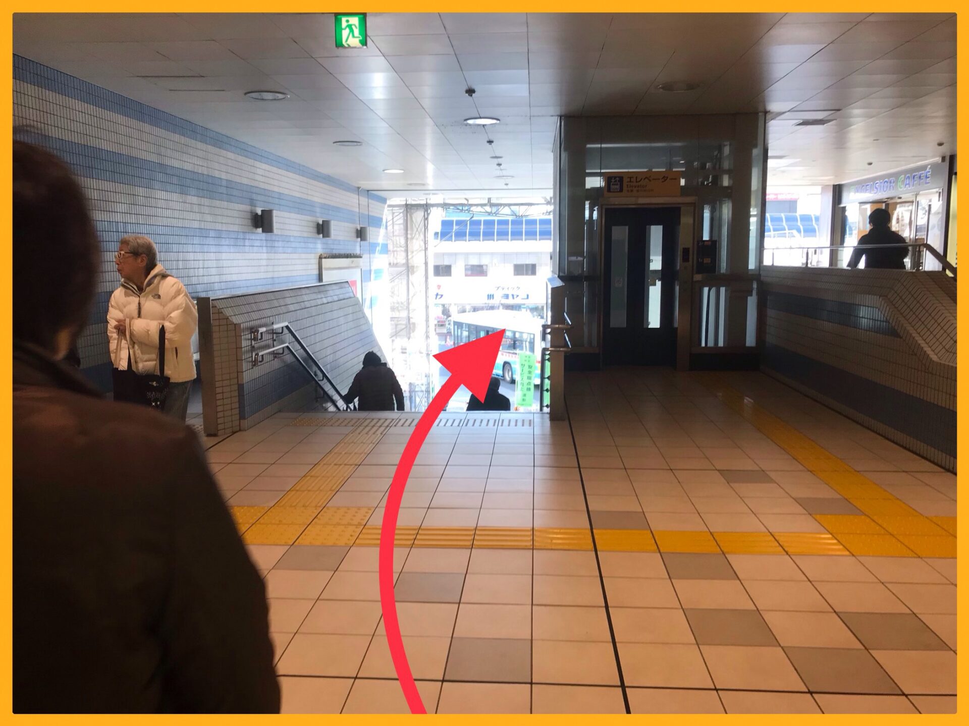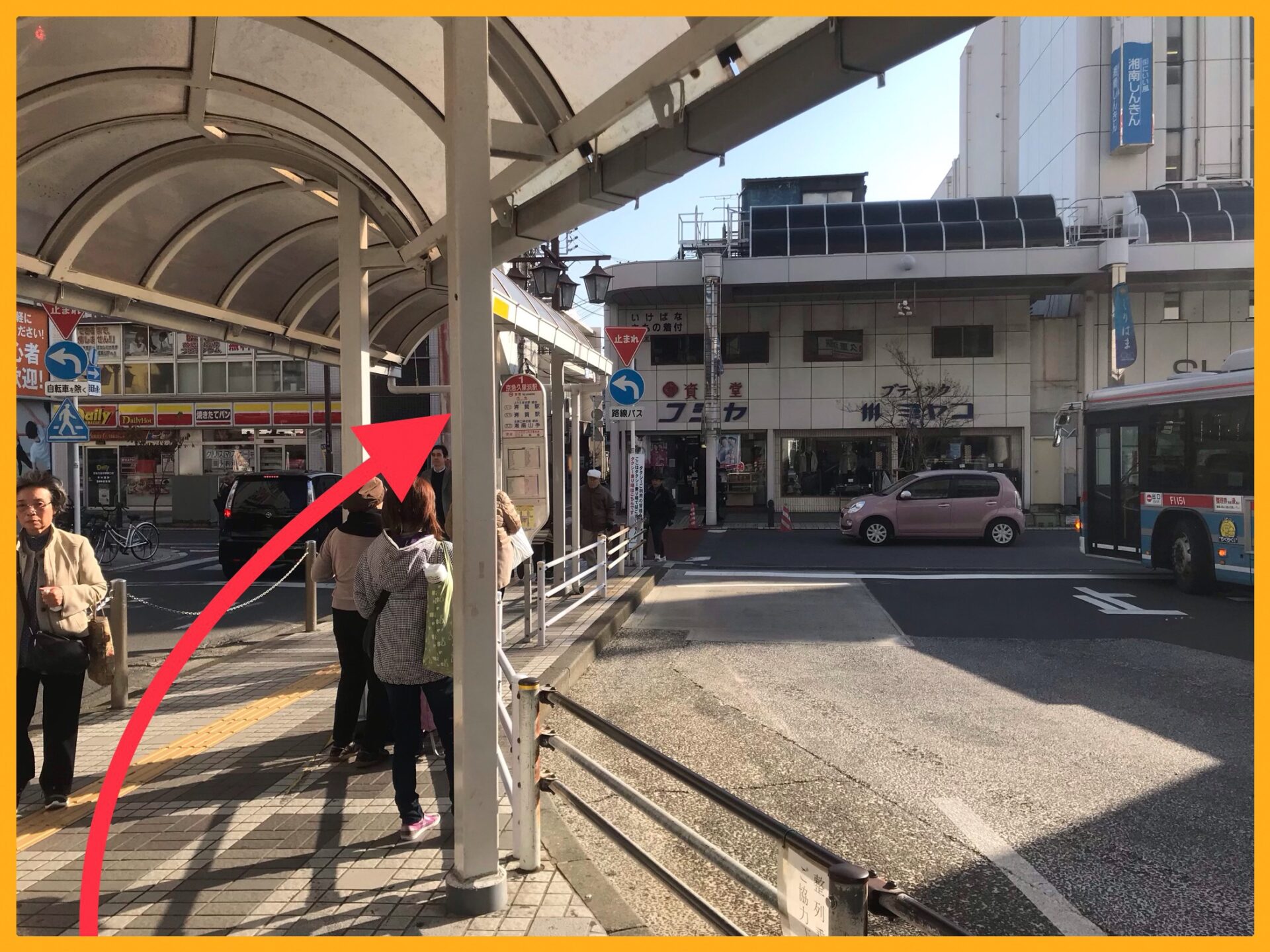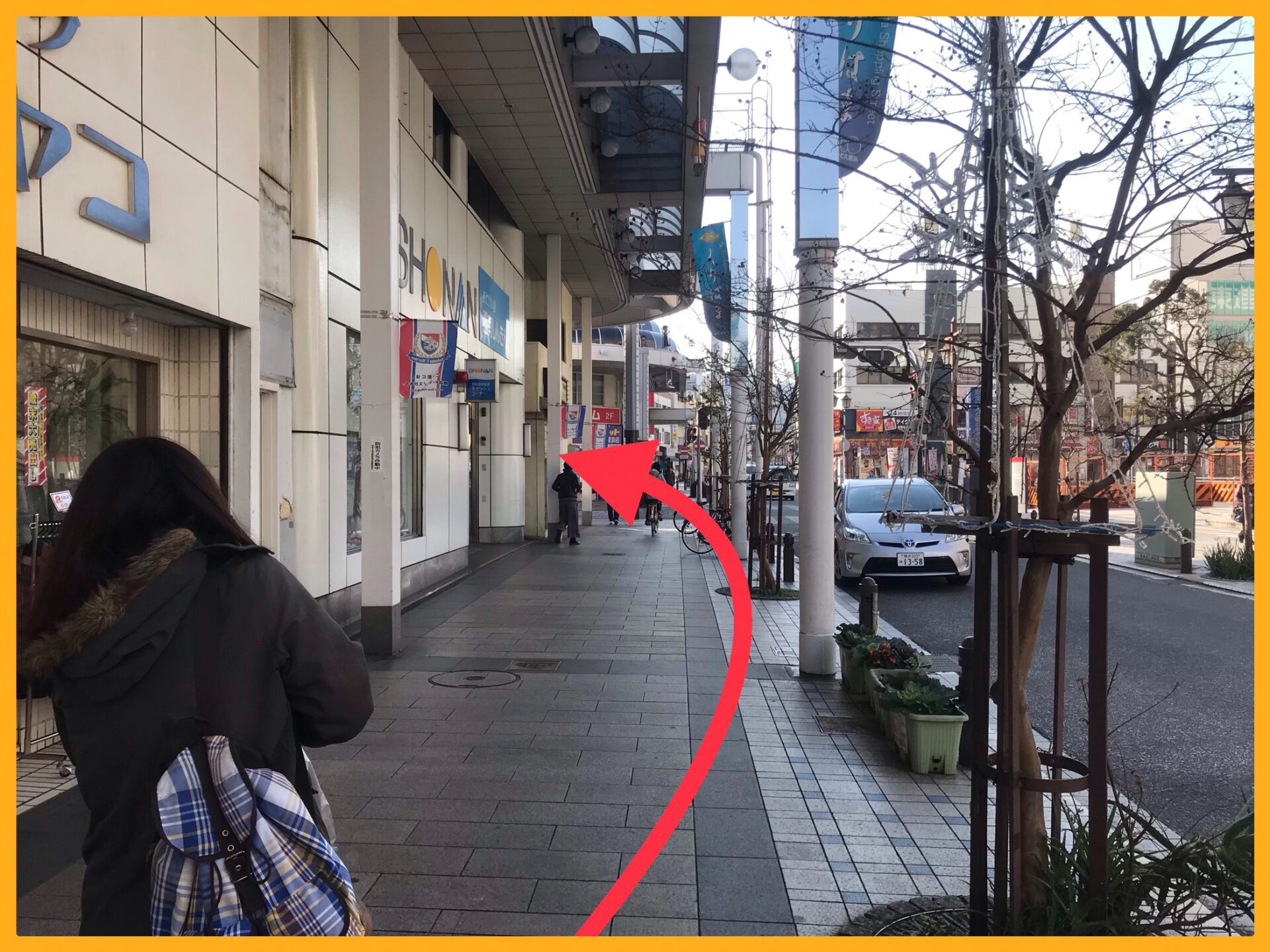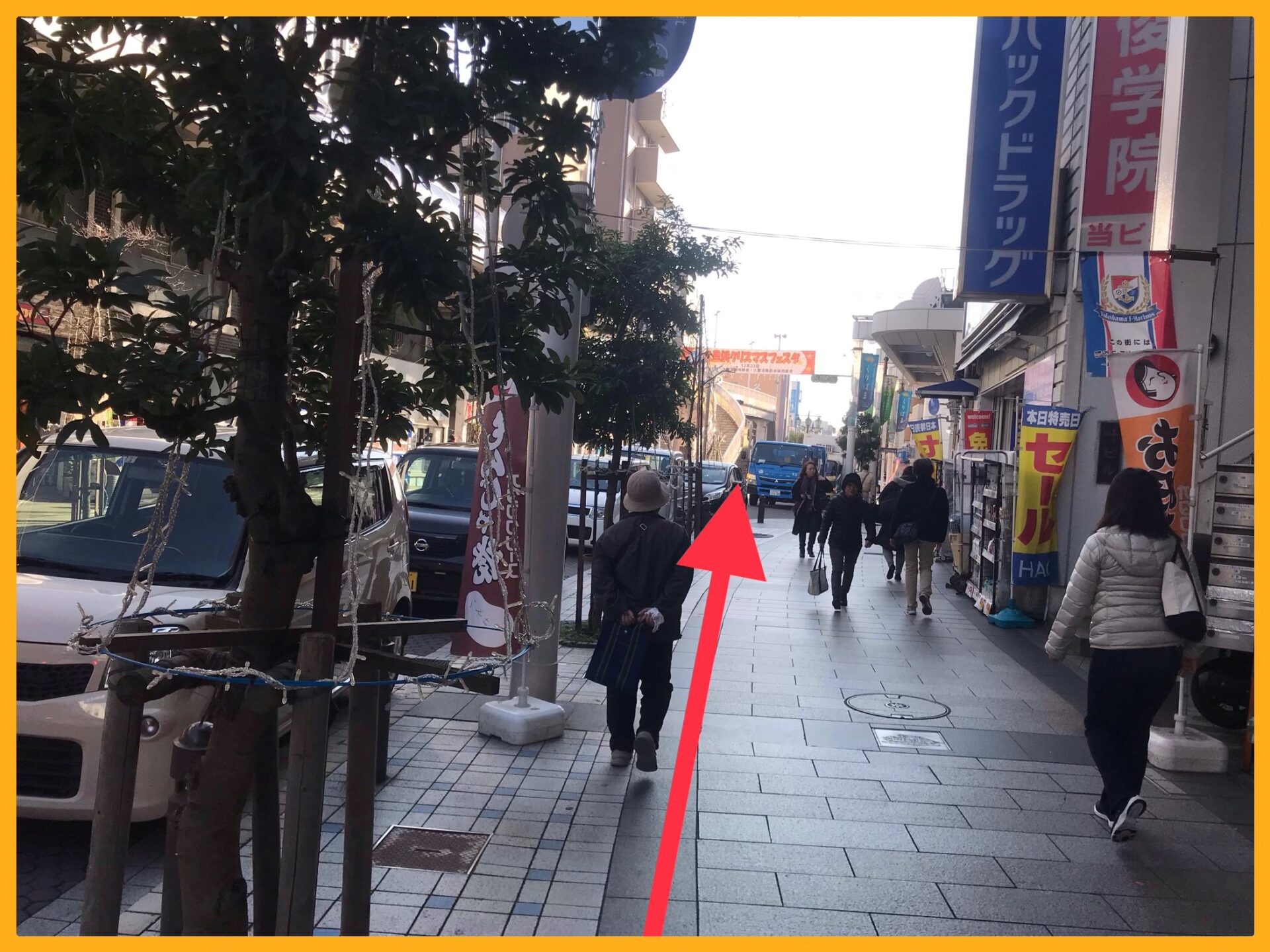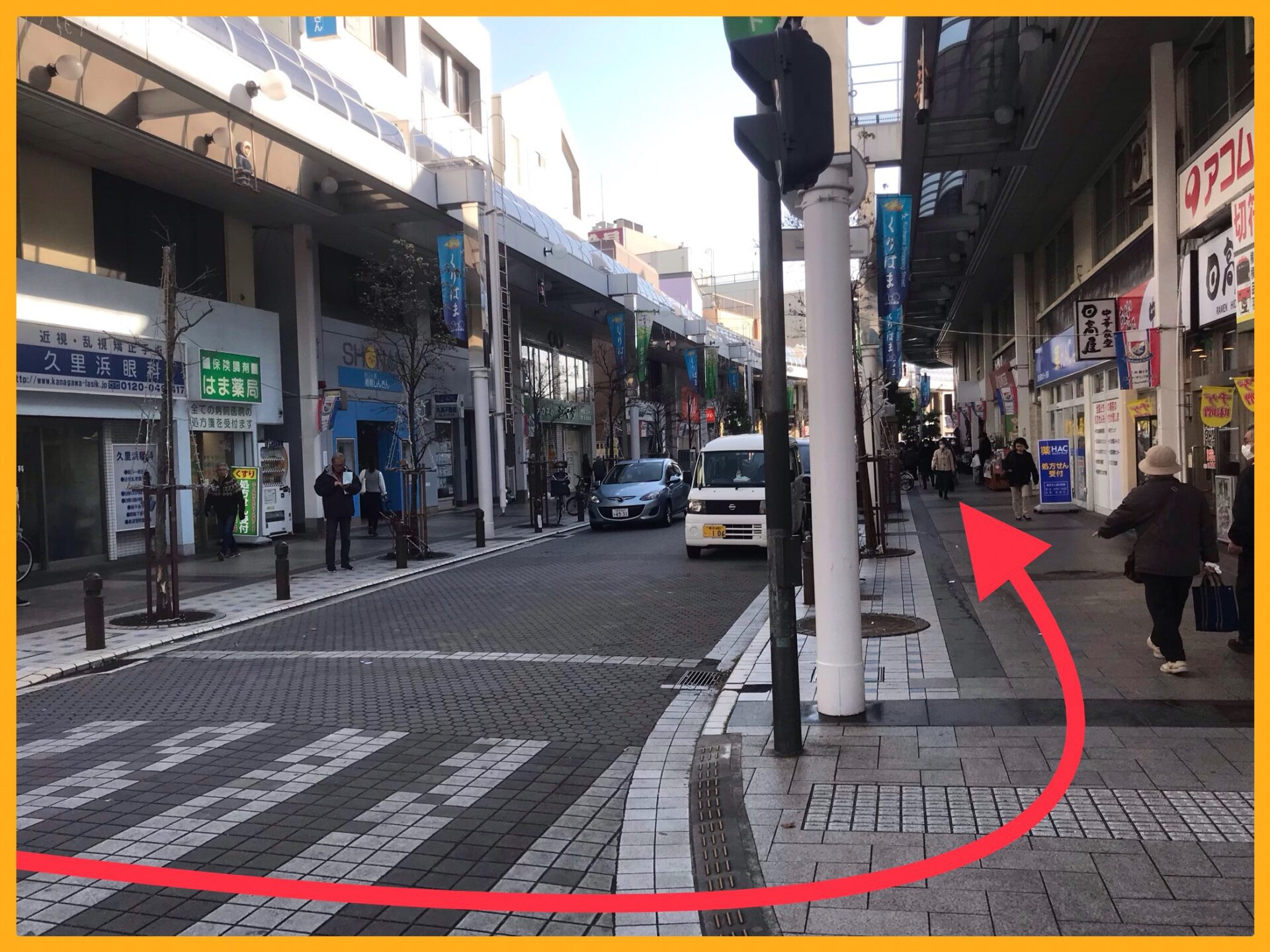 ②バスロータリーからハロード商店街を直進し大きな通りにつきあたったら右手にイオン久里浜店の建物が見えます。