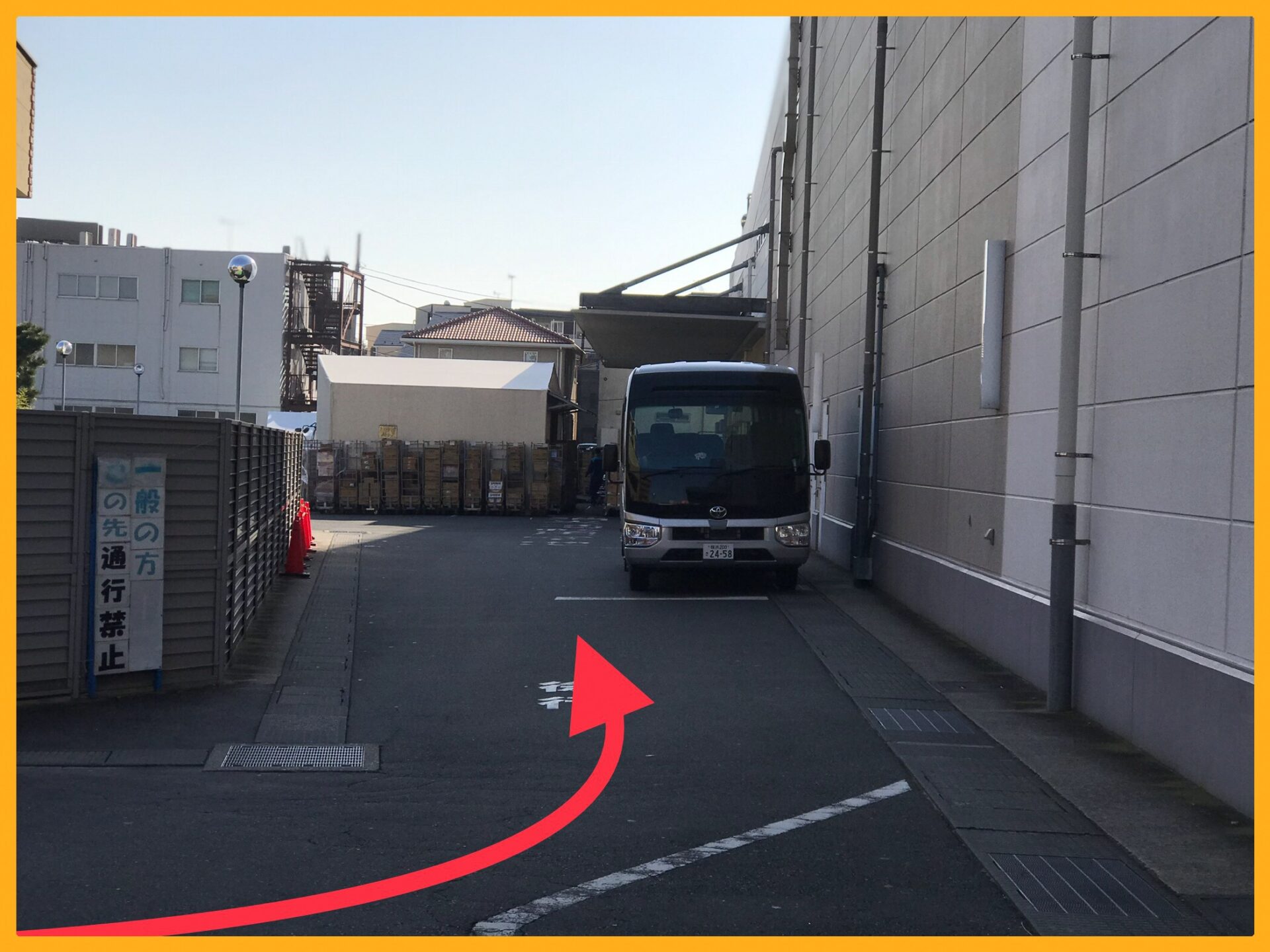 ③駿河銀行の前を過ぎたら左へ曲がるとAEONの裏口に出ます。