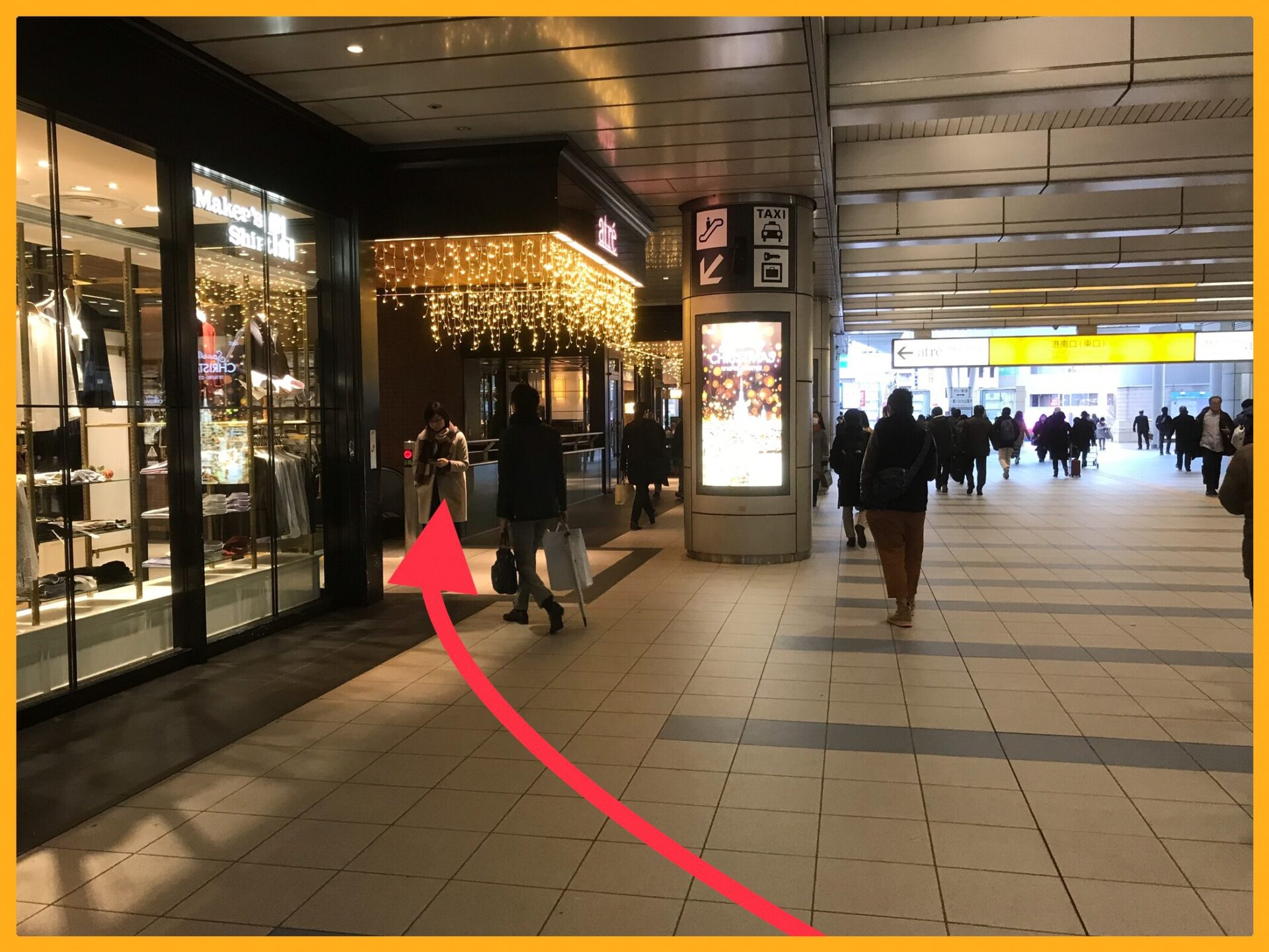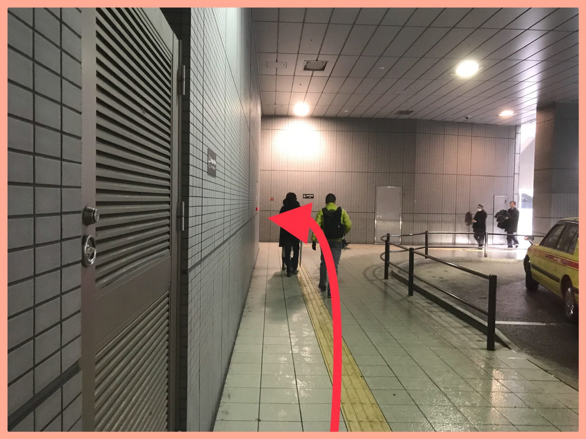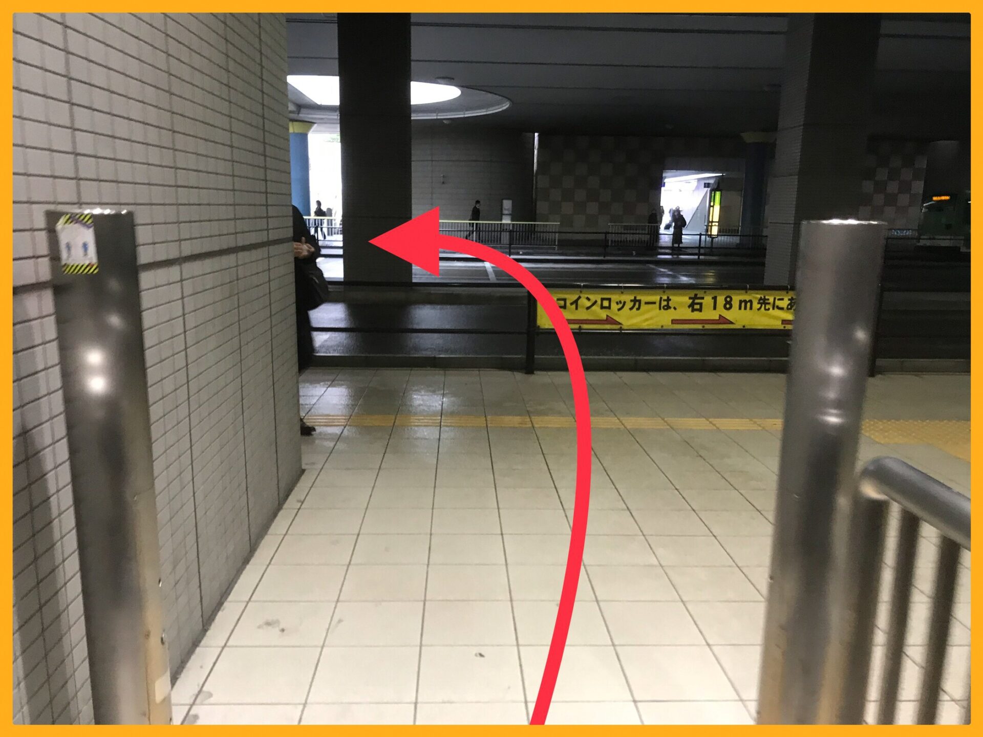 ④エスカレータを下って左に曲がり、突き当りを左に曲がります。
