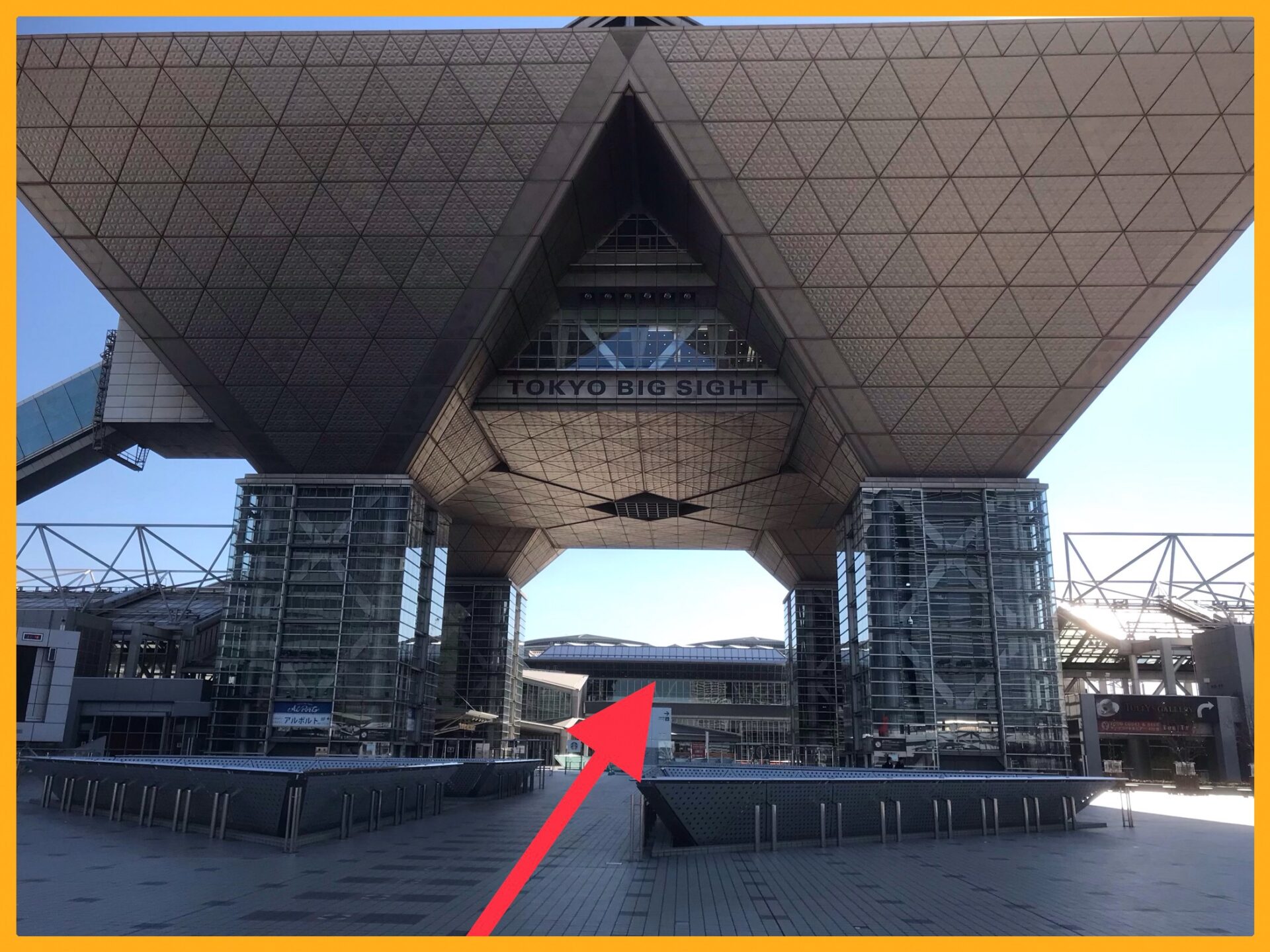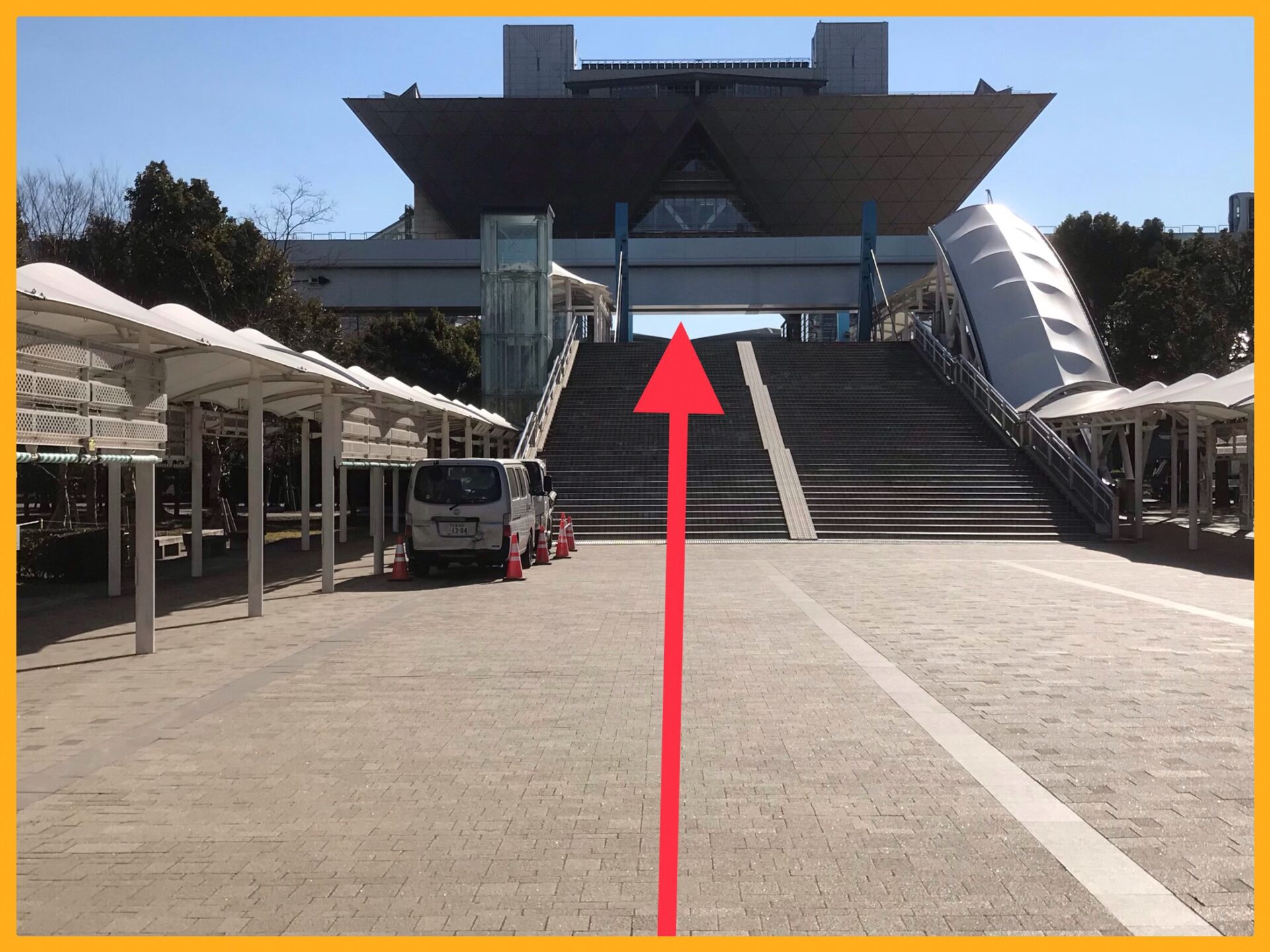 ②駅より前方ななめ右方向に東京ビッグサイトはあります。歩いて7分程です。↓