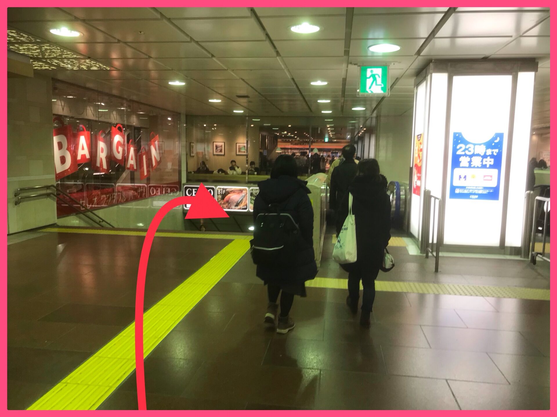 ②左側にあるエスカレーターで1Fに降り右方向へ行きます。
