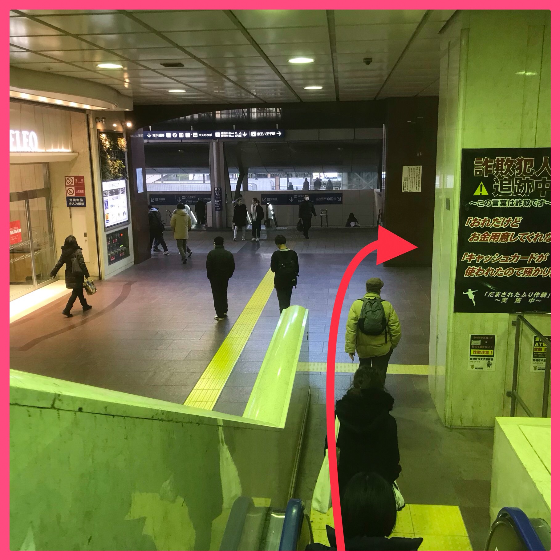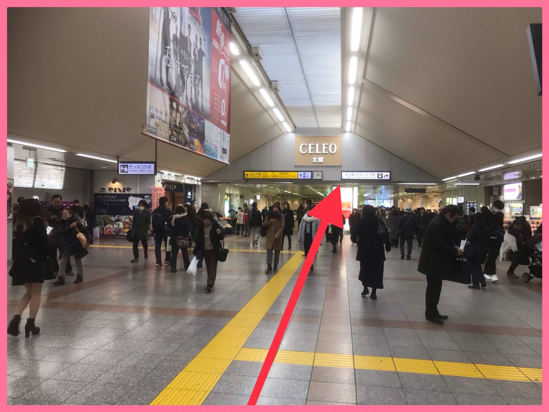 ①JR八王子駅改札口を出て北口方面へ向かいます。(セレオ八王子の看板ご見えます。)
