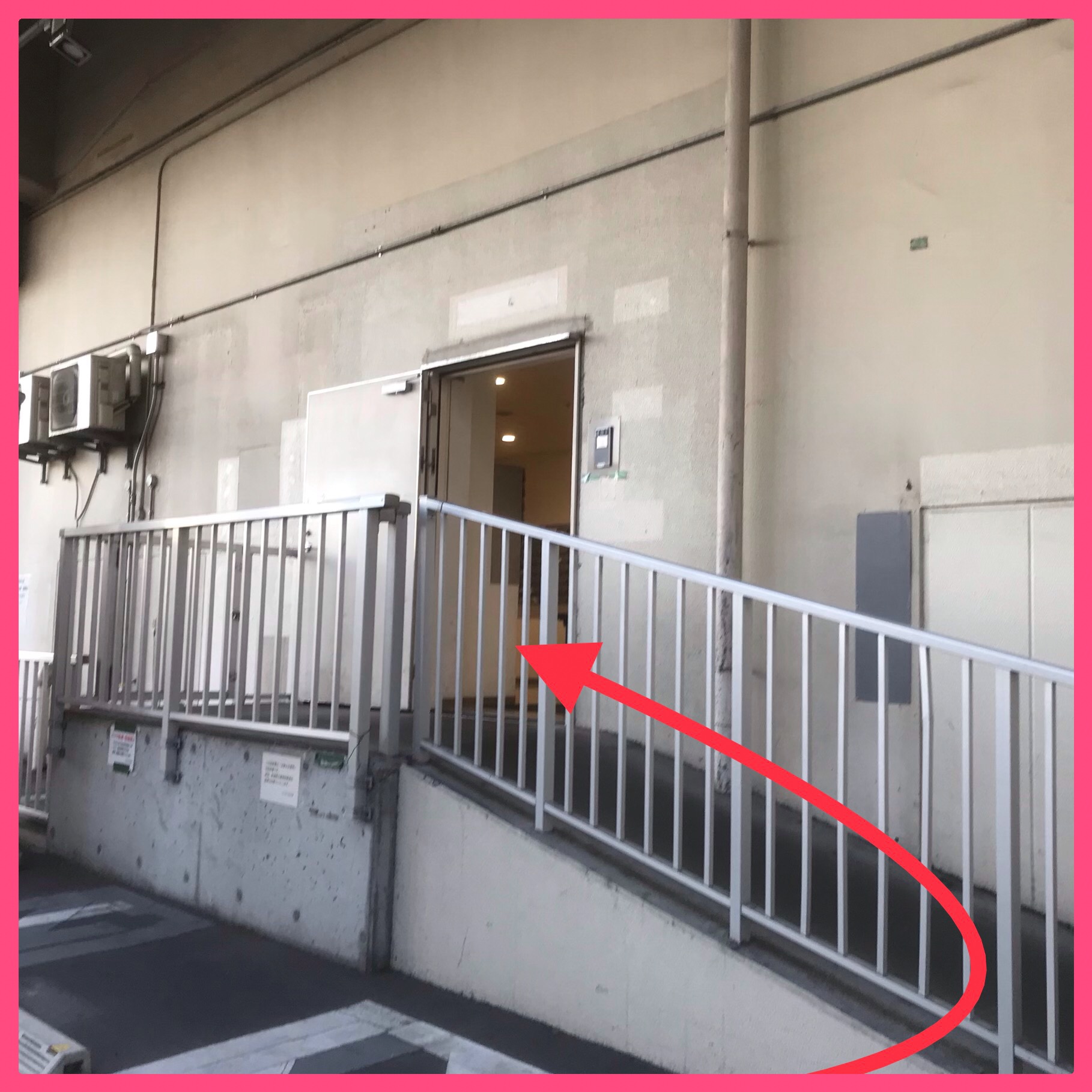 ③そのまま建物に沿って時計回りに進むと荷物運搬口が見えてきます。