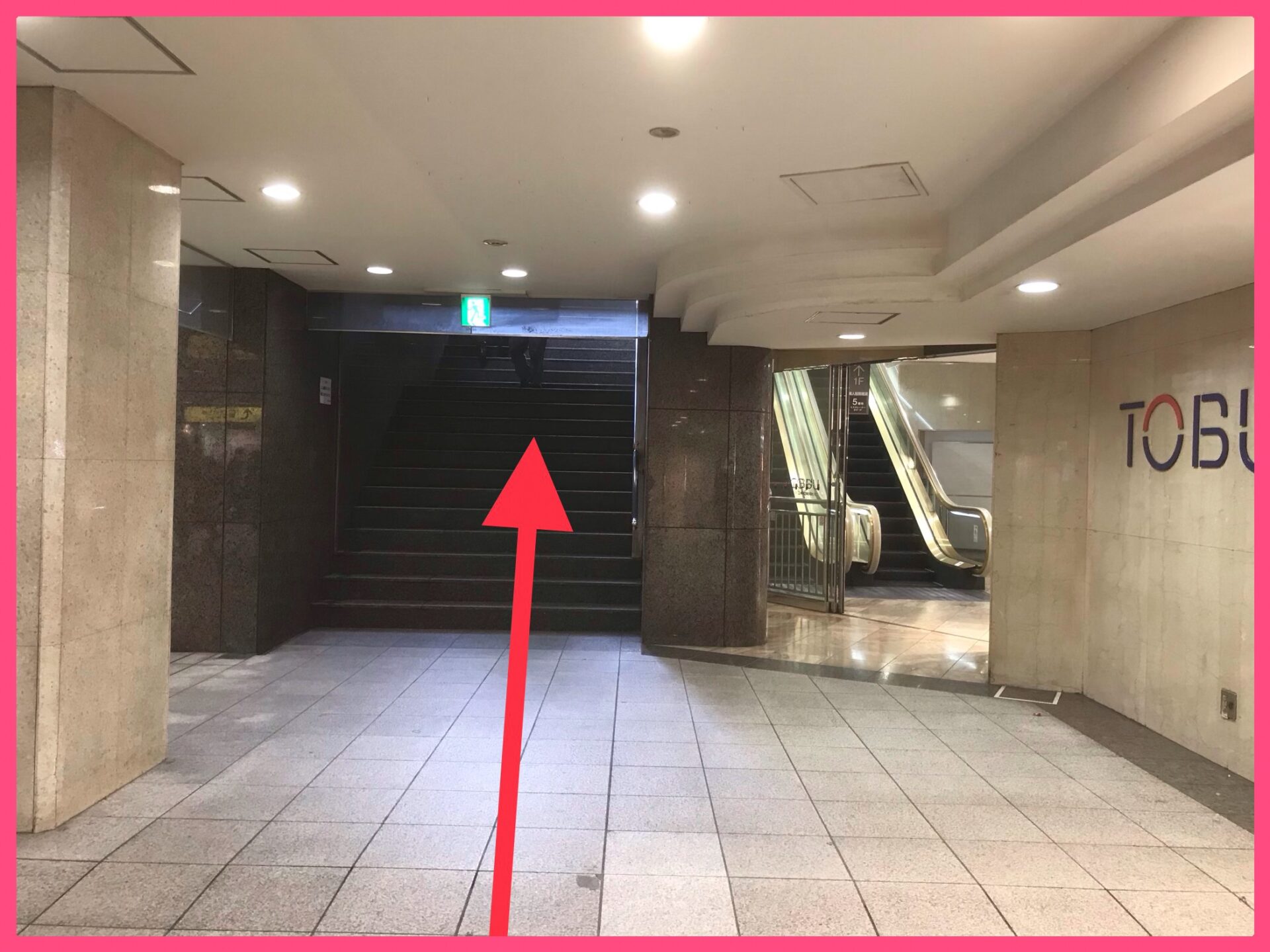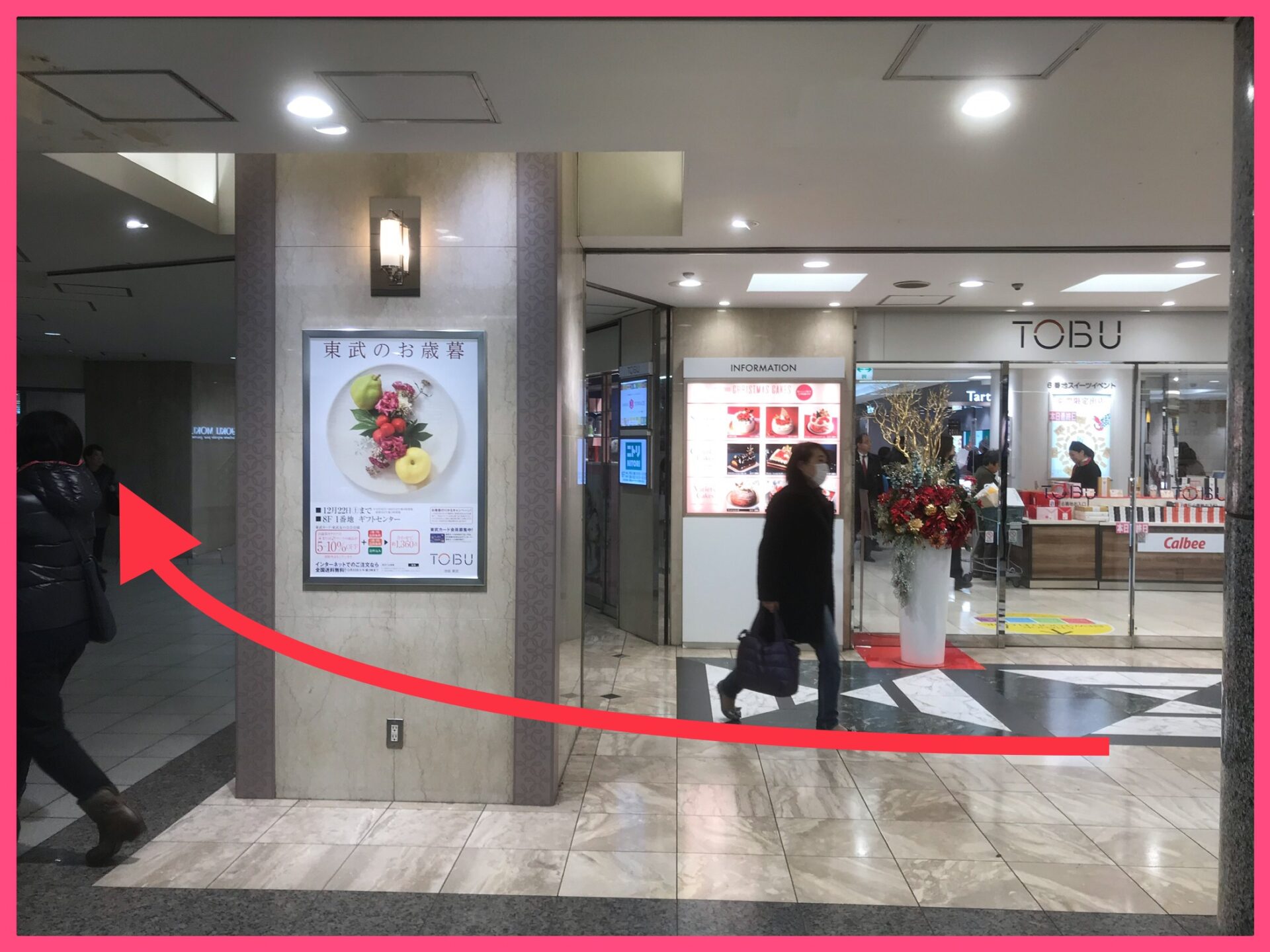 ③右脇に東武百貨店があります。東武百貨店を通り過ぎた所で右に曲がります。