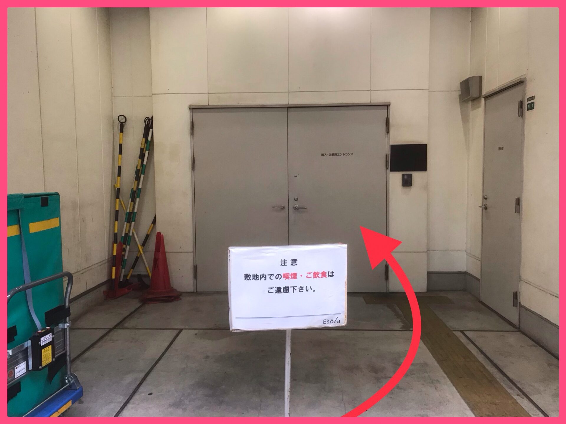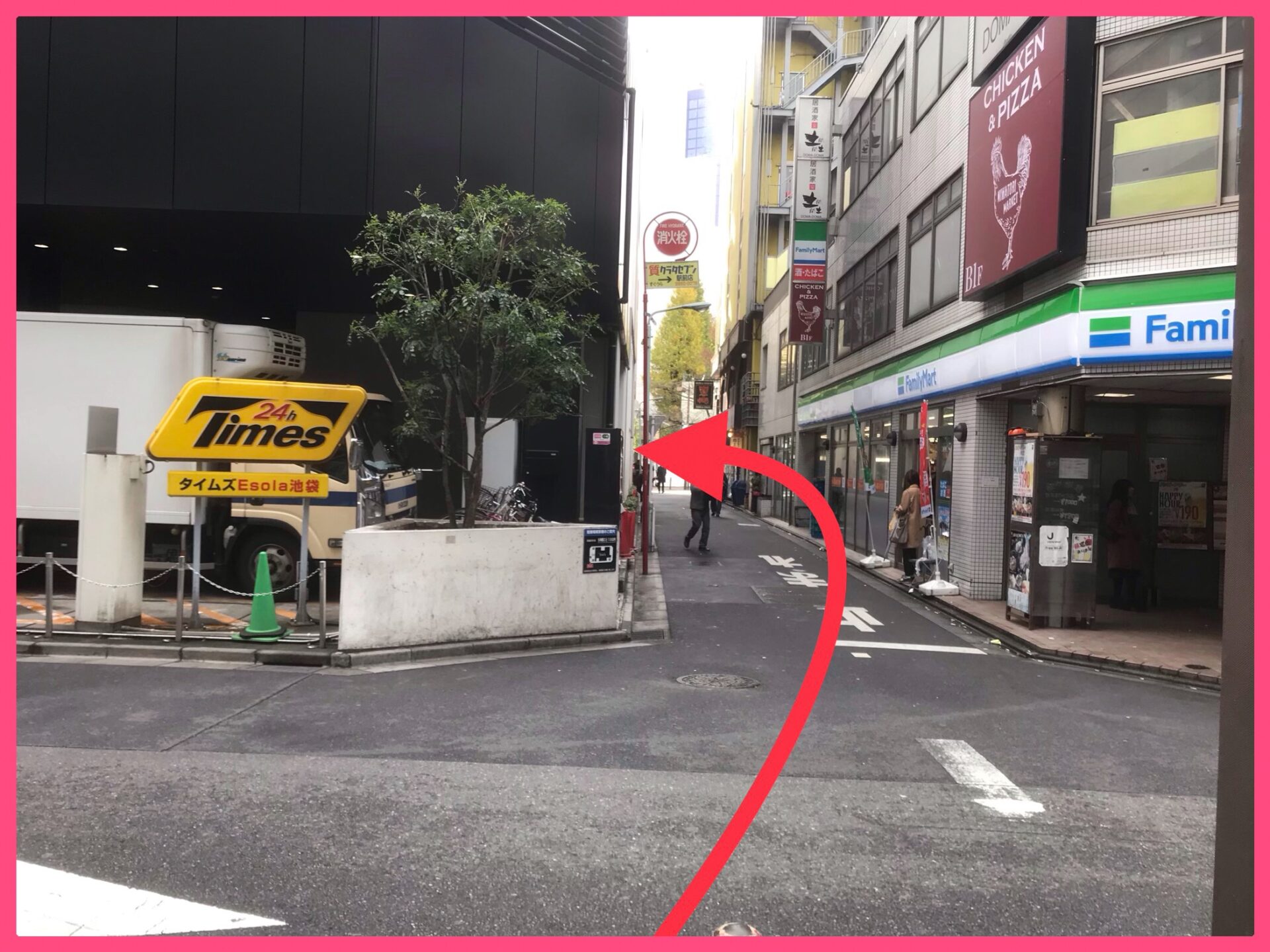 サンクスの入り口の向かい側がエソラ池袋の従業員入口です。