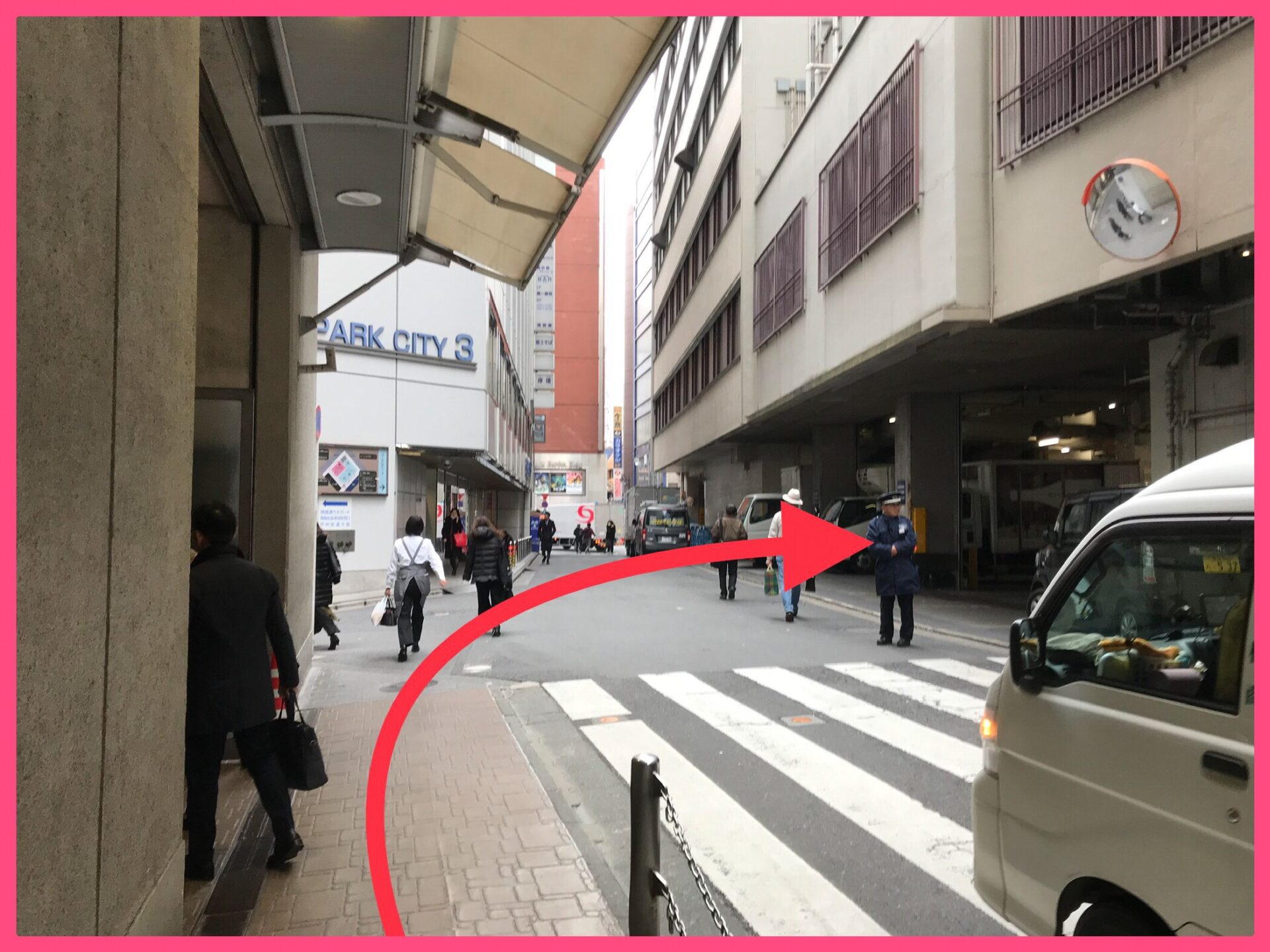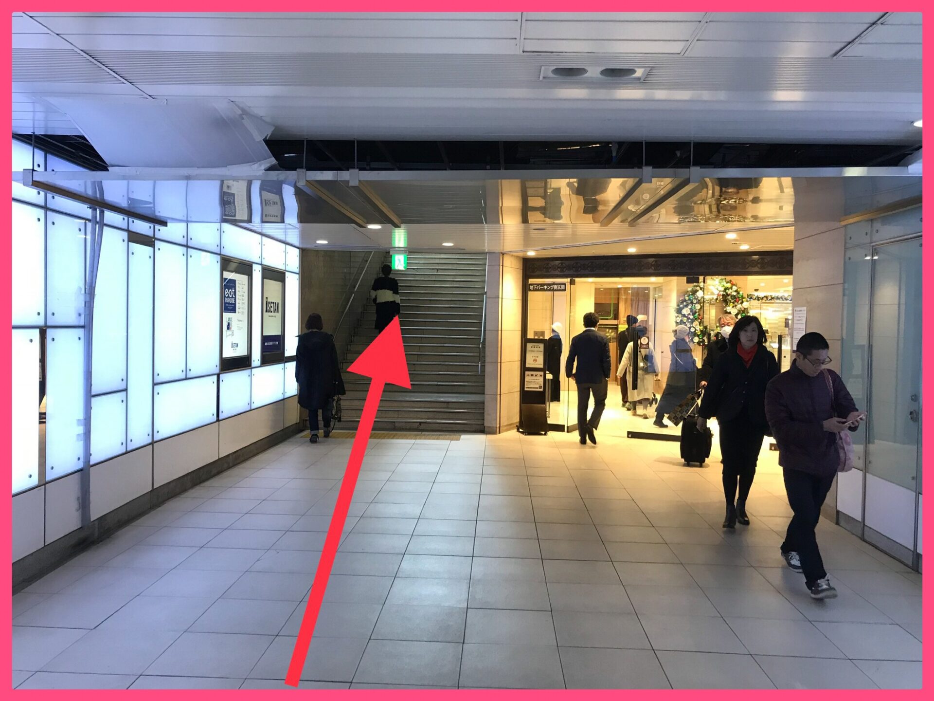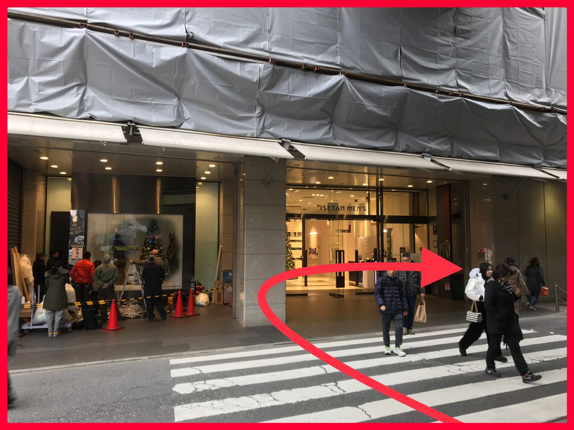 ②地上に上がり真っ直ぐ進むと伊勢丹メンズ館がありますので、渡ってから右折します。