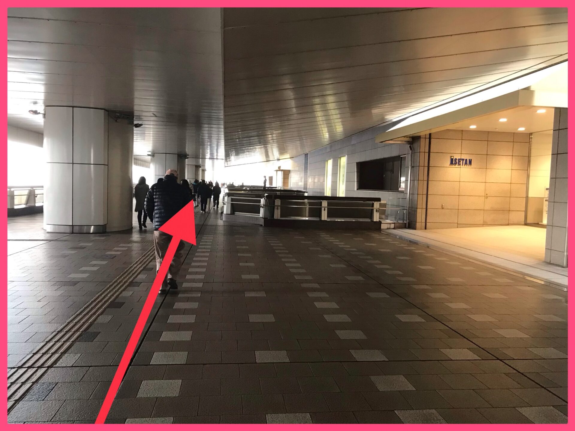 ②エスカレーター等で降りずに、左手前方に見える伊勢丹にそのまま向かいます。