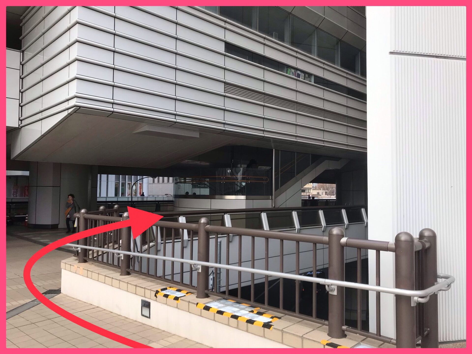 ③2階正面入口に出るので、そのまま時計回りで左手の方に建物に沿って進みます。