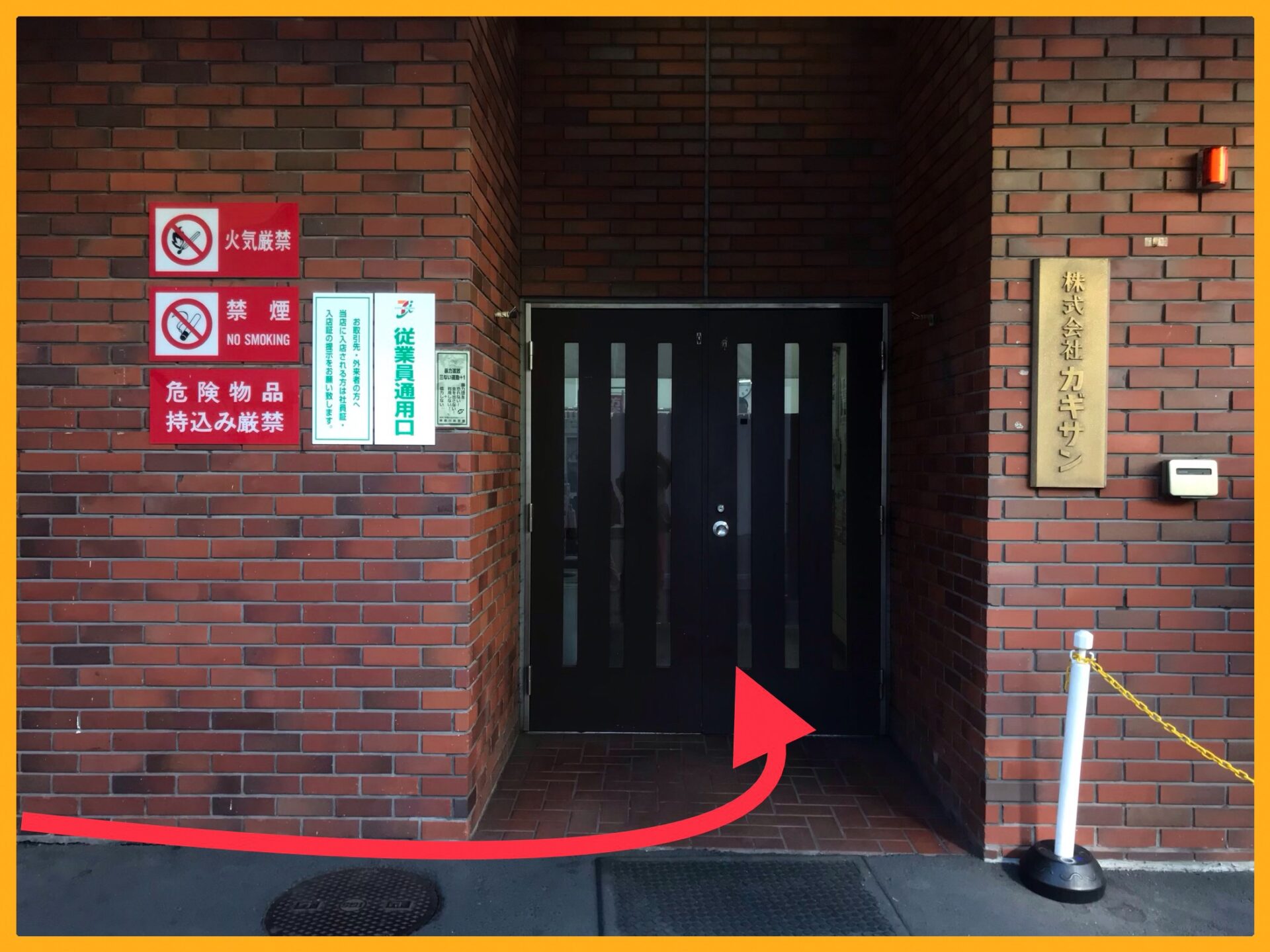 ⑤1Fに降りて正面口から右に建物に沿って進みます。