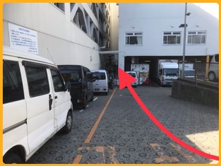 ⑤駐車場を過ぎるとイトーヨーカドーさんの荷物運搬口がありますので中に入って行きます。