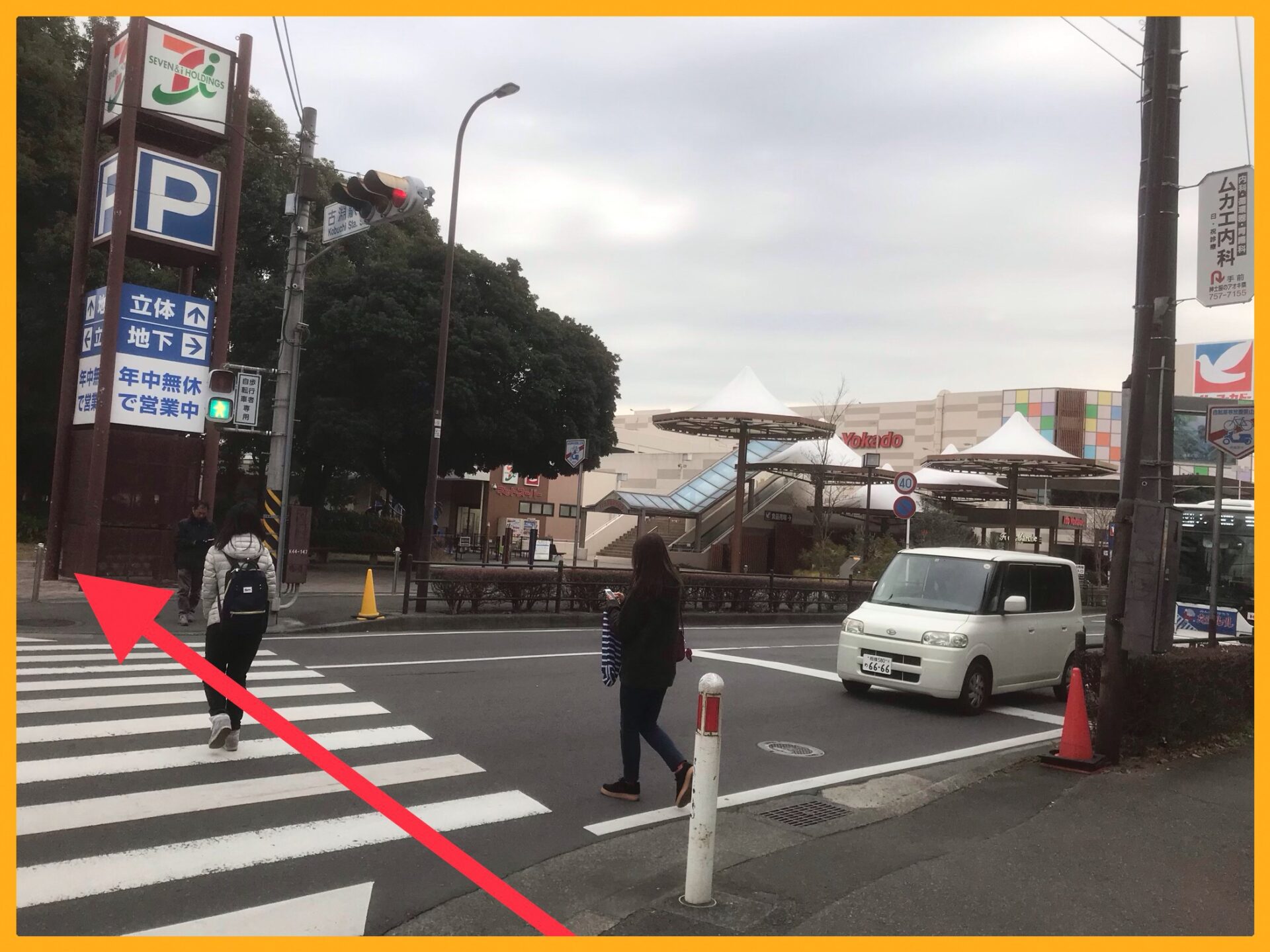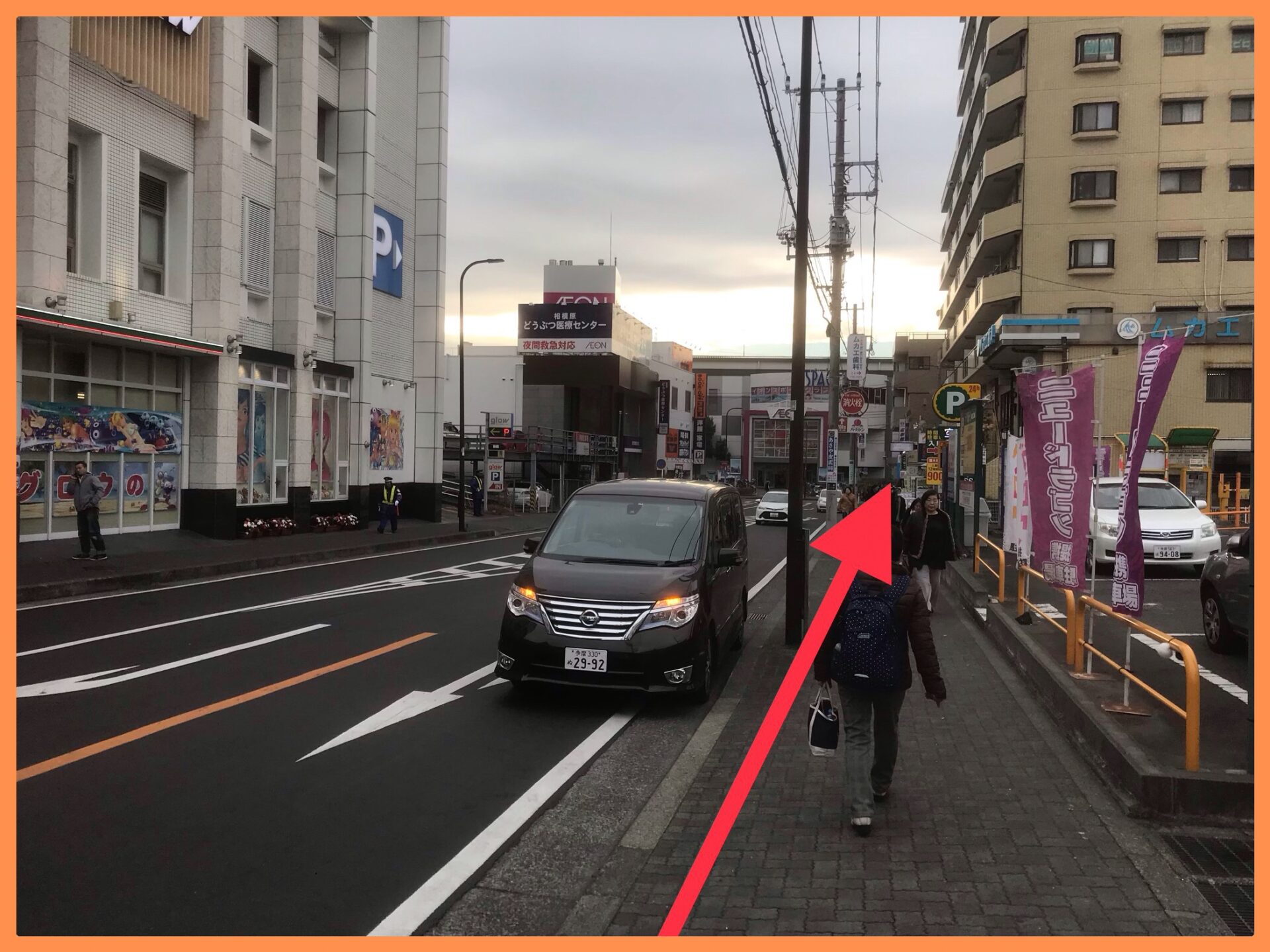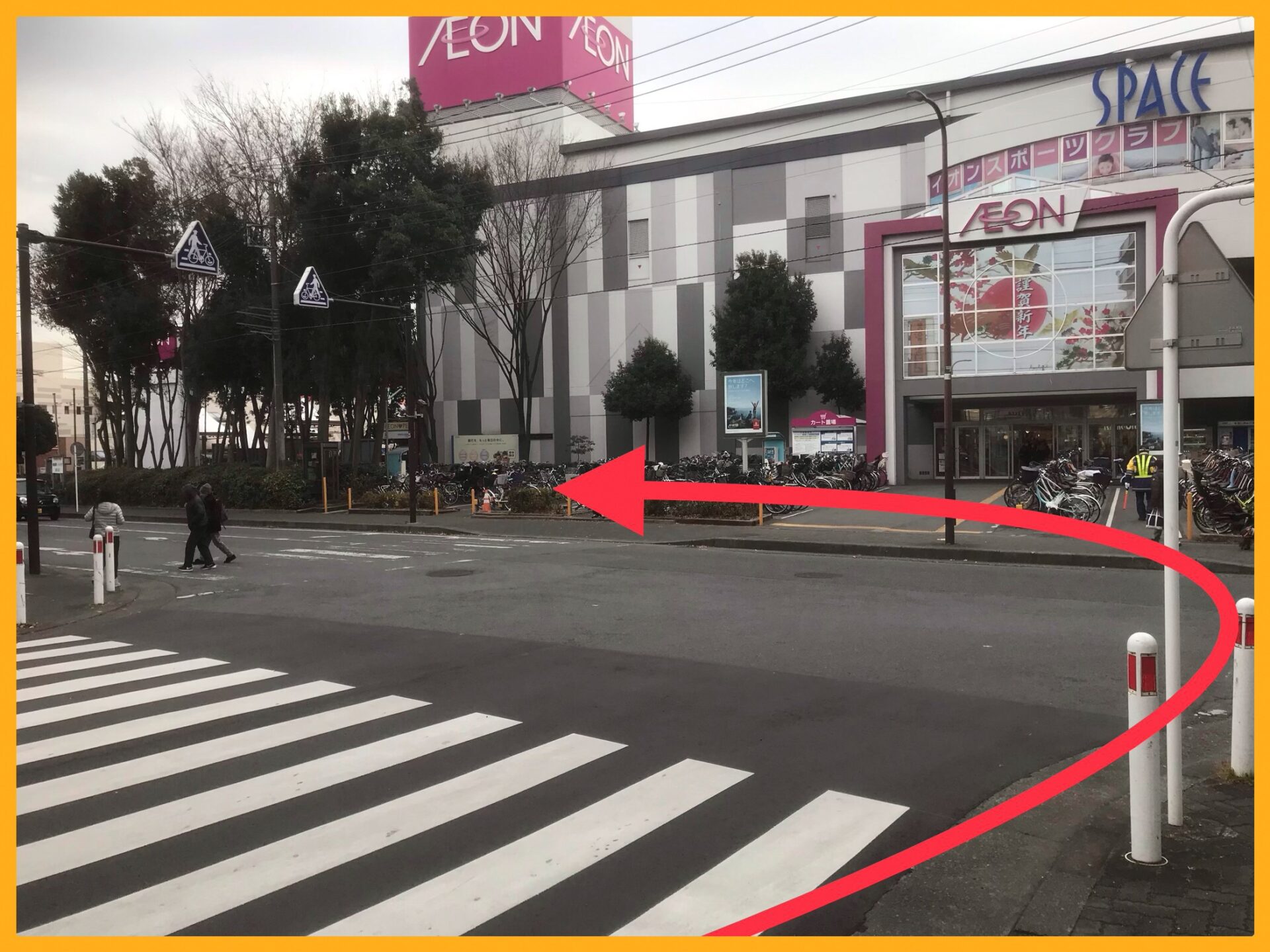 ④AEONの前を左に曲がります。隣にイトーヨーカドーがあります。