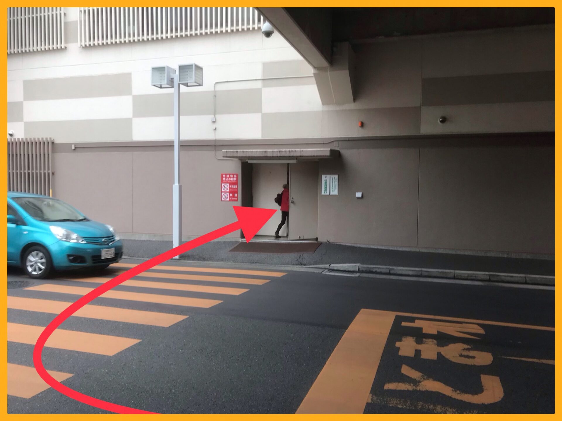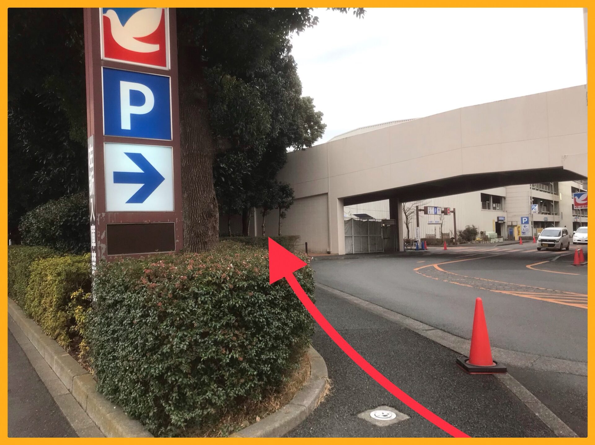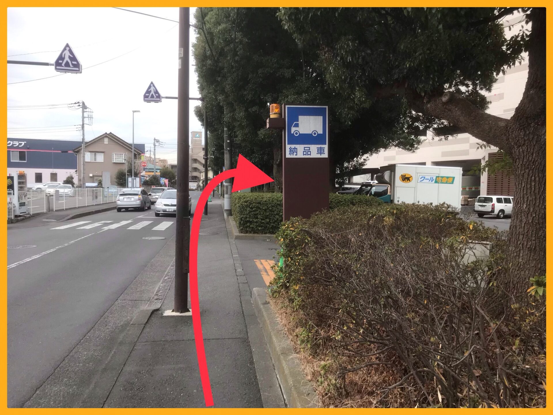 ⑦納品口をそのまま過ぎてその先に駐車場入り口があります。