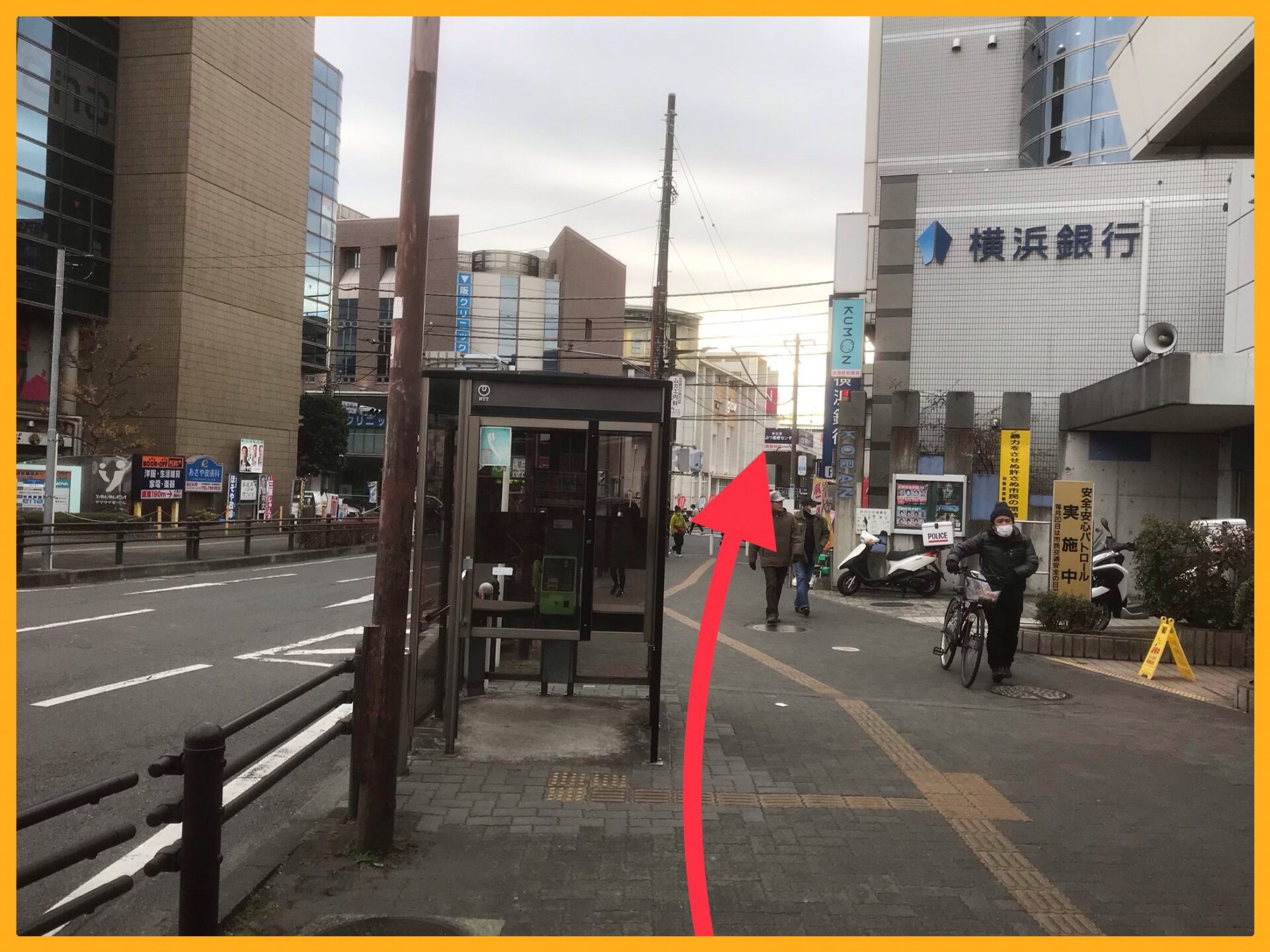 ①JR横浜線古淵駅改札口を出て右に曲がります。