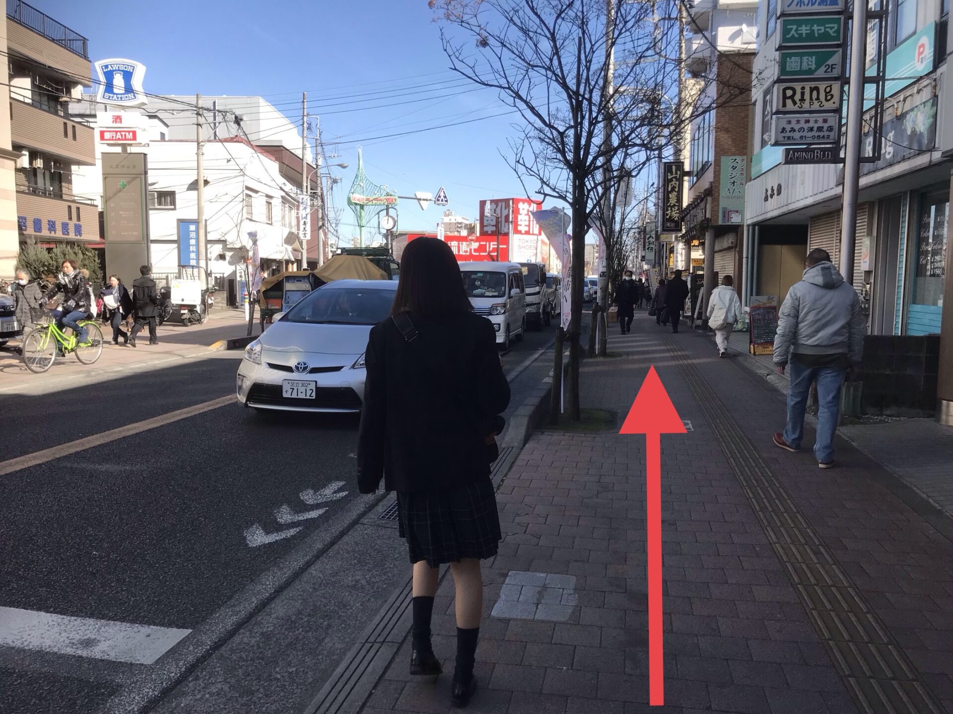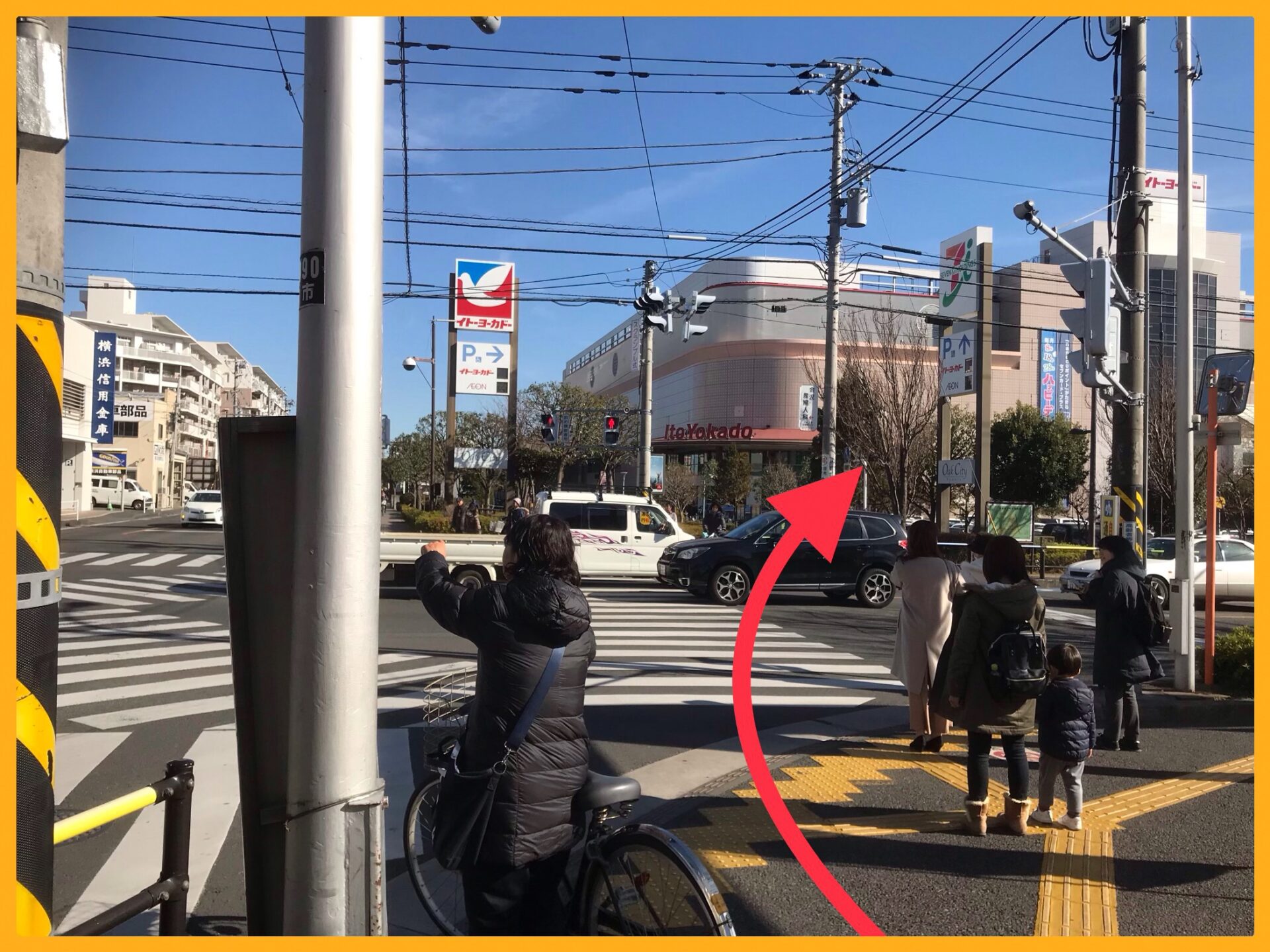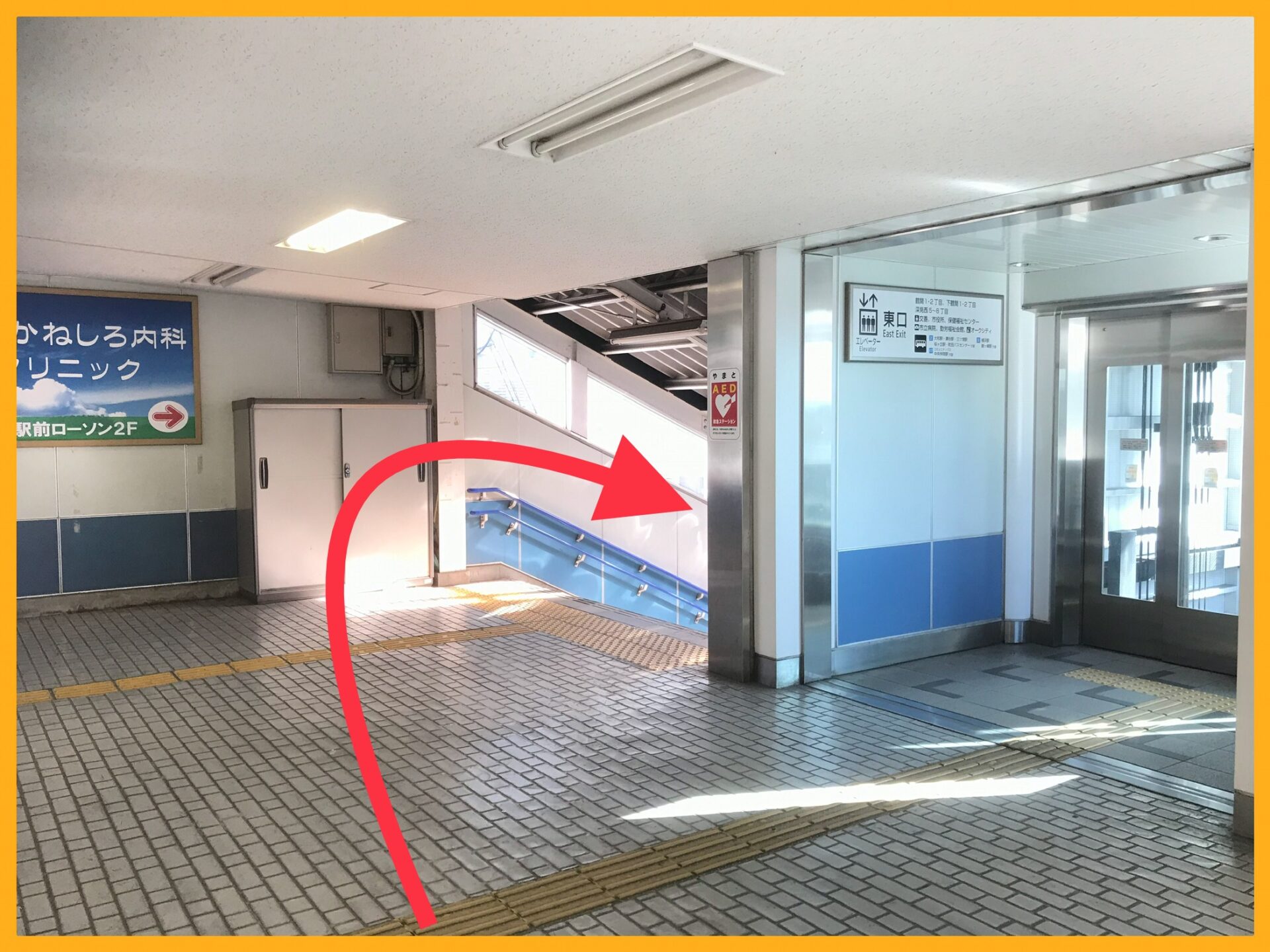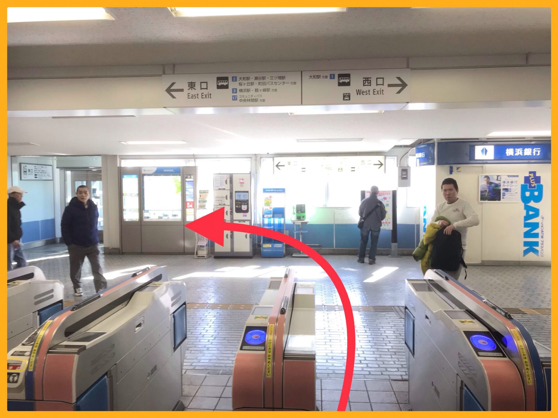 ①小田急江ノ島線鶴間駅改札口を出て東口方面へ向かいます。