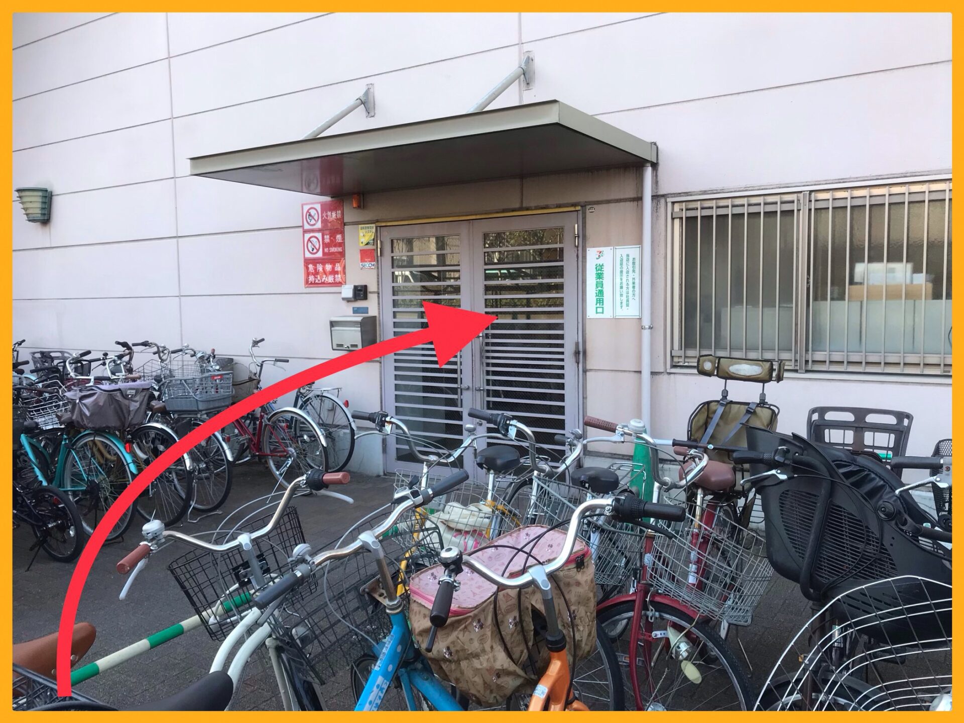 ⑤自転車置き場を過ぎると従業員通用口があります。