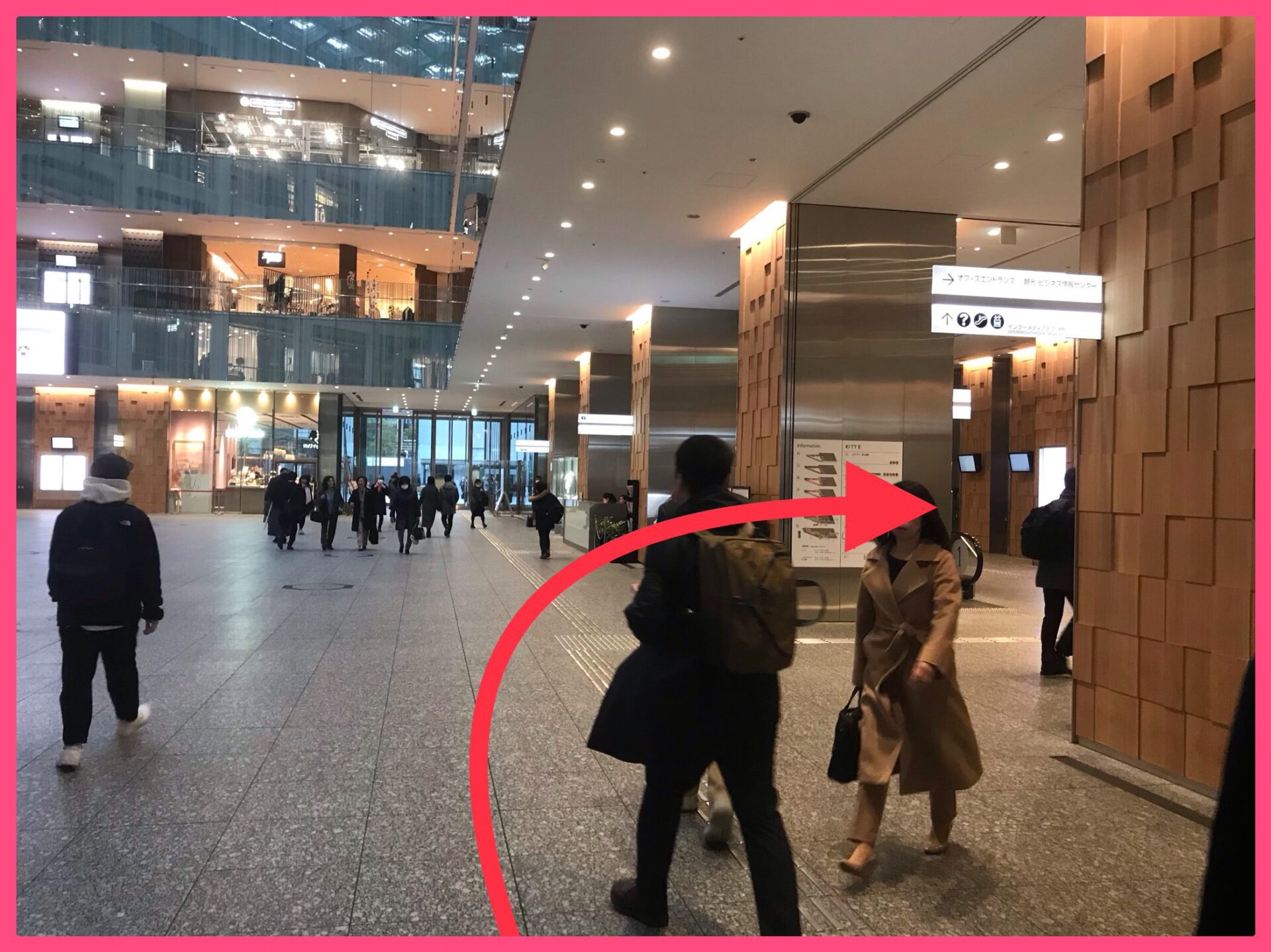 KITTE 東京 投稿日 2019.02.19 更新日 2025.08.29 著者 prismgate 商業施設 KITTE ①東京駅 丸ノ内中央改札口、あるいは丸ノ内南改札口を出ると左側に KITTE (日本郵便)があります。↓ ②KITTE正面まで行き中に入ります。↓ ③入ったらすぐ右に真っ直ぐ進むと左側に通用口があります。↓ お仕事をお探しの方は LINE登録 人材をお探しの方は 企業担当者さまへ