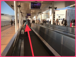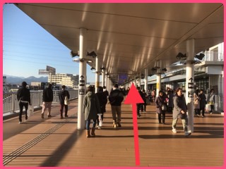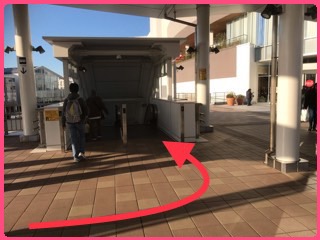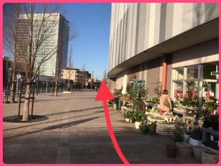 ④エスカレーターを降りたら建物に沿って時計回りに進みます。