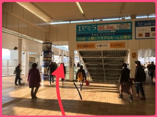 ③ららぽーと正面口の左側にあるエスカレーターで1Fに降ります。