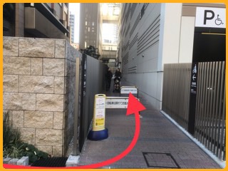 ⑤ららテラスが左側に見えてきます。手前に自転車置き場入り口がありますのでそこを入っていきます。