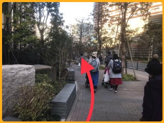 ③表に出たら左に向かいます。↓