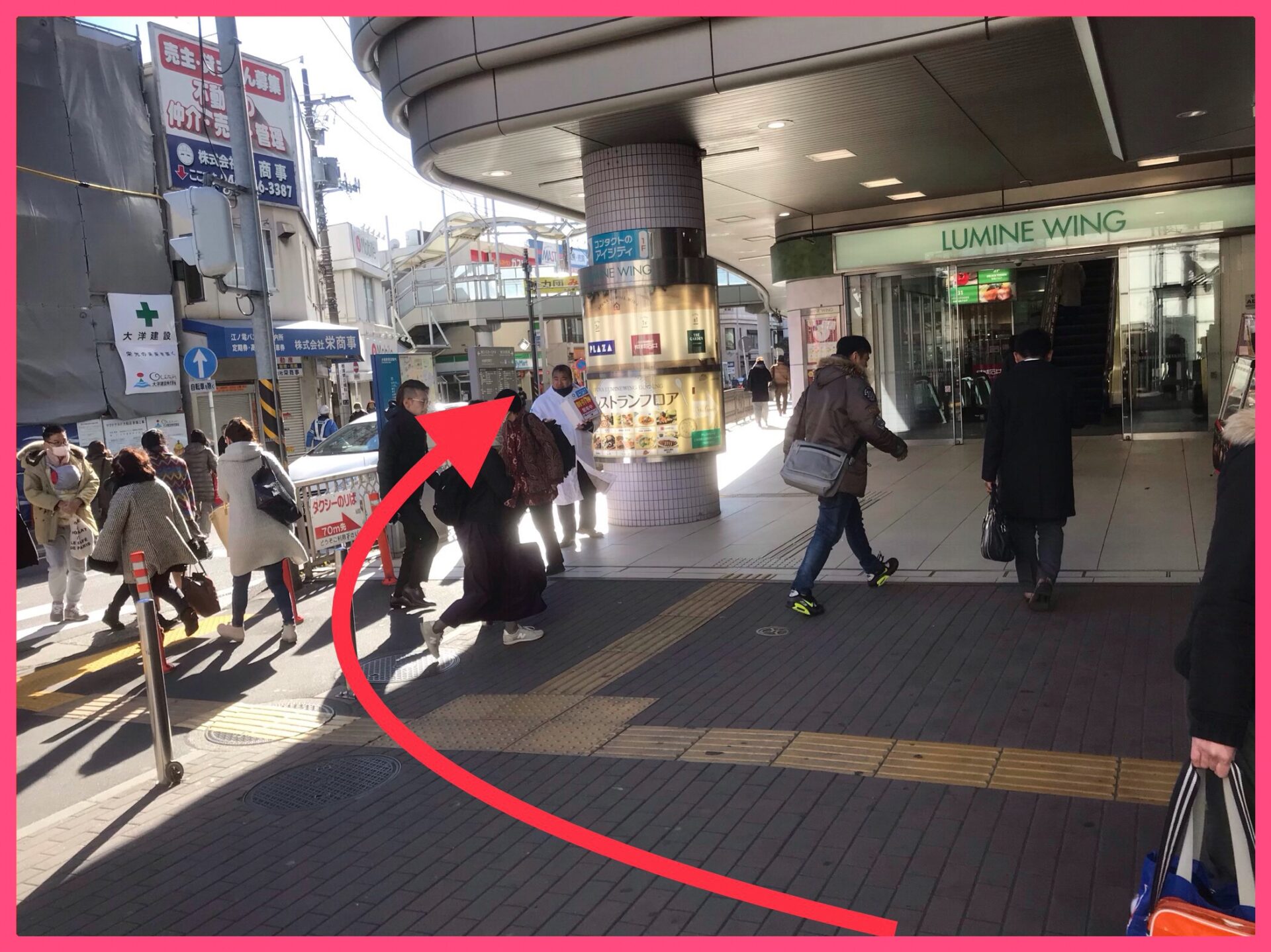 ルミネウイング 大船店 投稿日 2019.02.05 更新日 2025.09.03 著者 prismgate 商業施設 ルミネ ①JR大船駅改札口を出て左方向に向かいます。 ②東口方向へ向かいます。 ③東口階段を降ります。 ④階段を降りたら右へ進みます。 ⑤ルミネウイング大船店の建物に沿って進みます。 ⑥そのまま進みます。 ⑦階段のちょっと先に従業員通用口があります。 お仕事をお探しの方は LINE登録 人材をお探しの方は 企業担当者さまへ