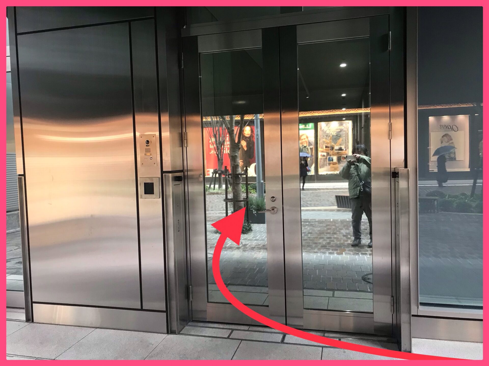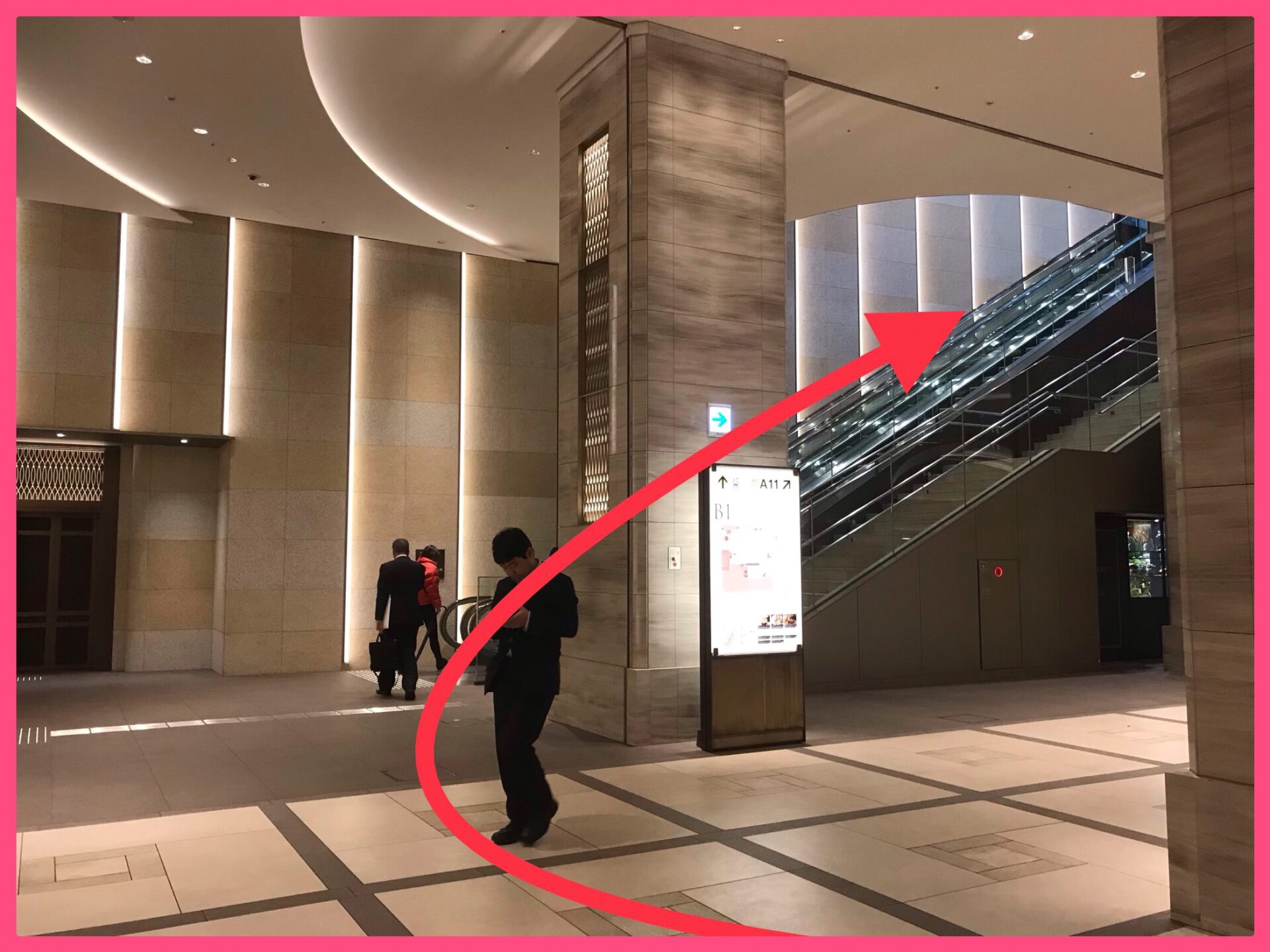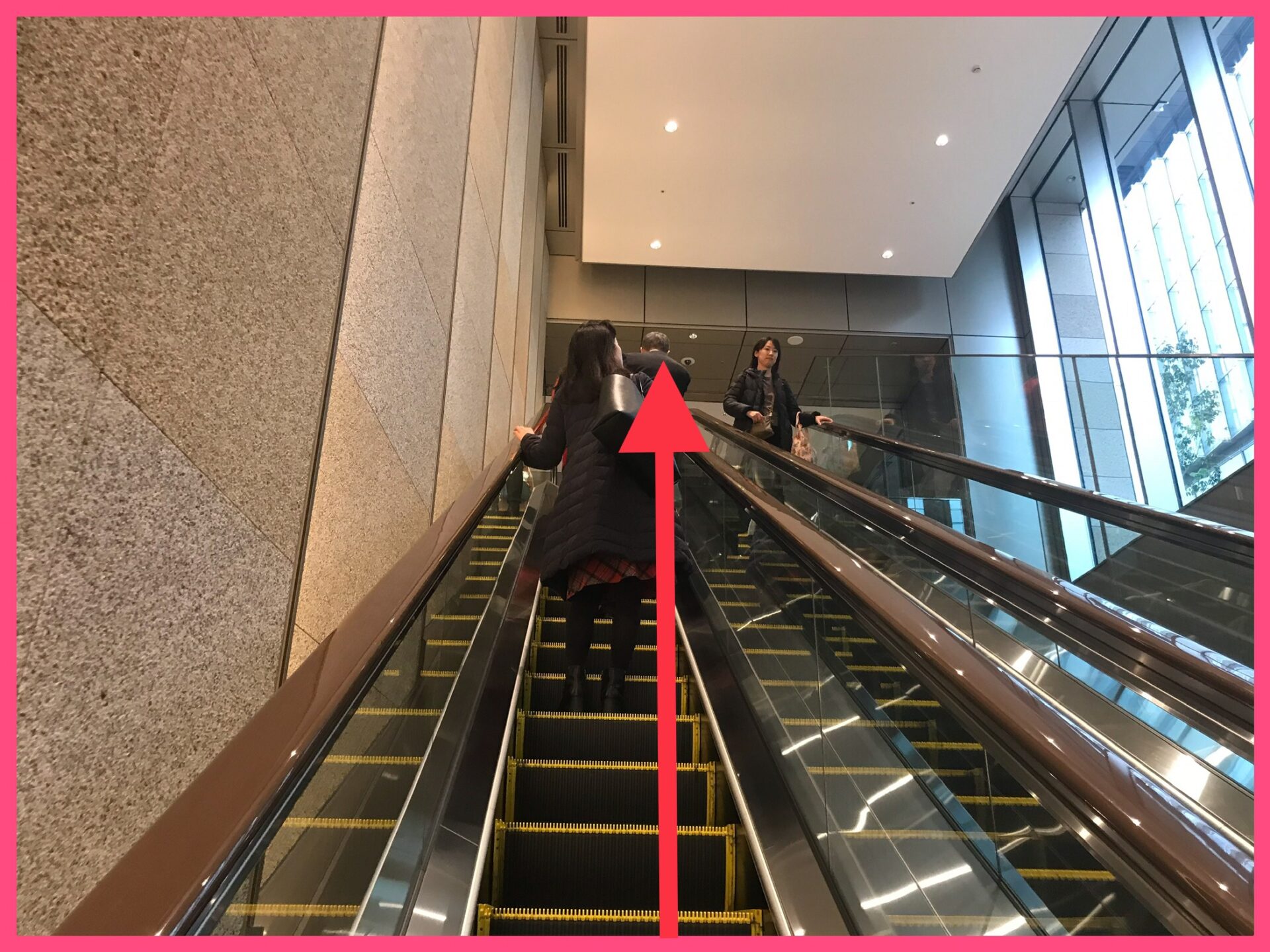 ②東京ミッドタウン日比谷直通口に出ますが、「A11」の出口に向かうエスカレーターで表に出ます。↓