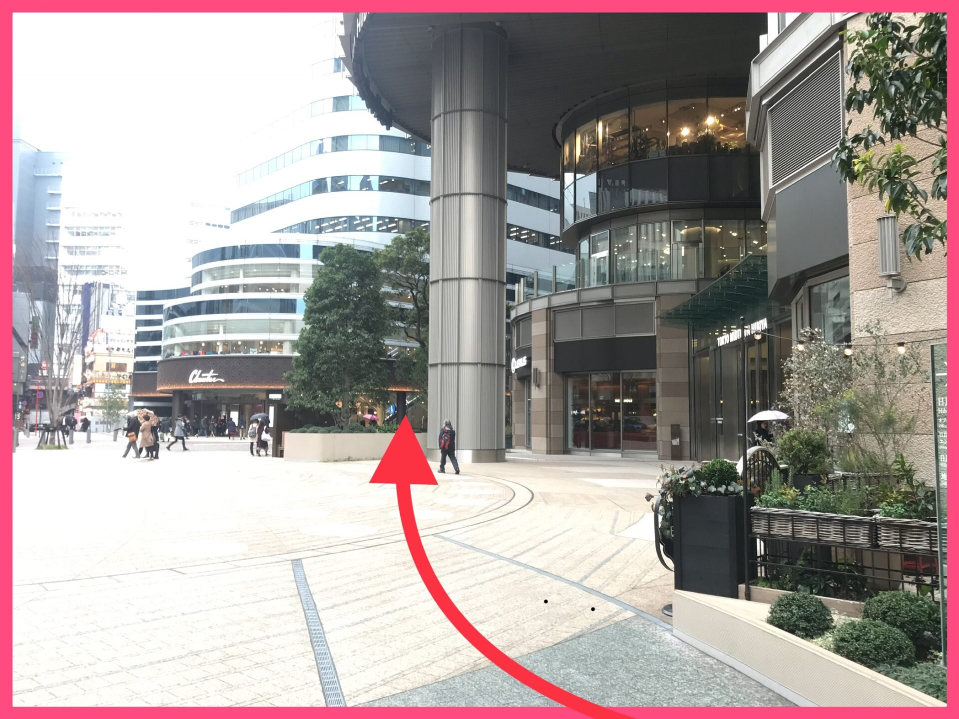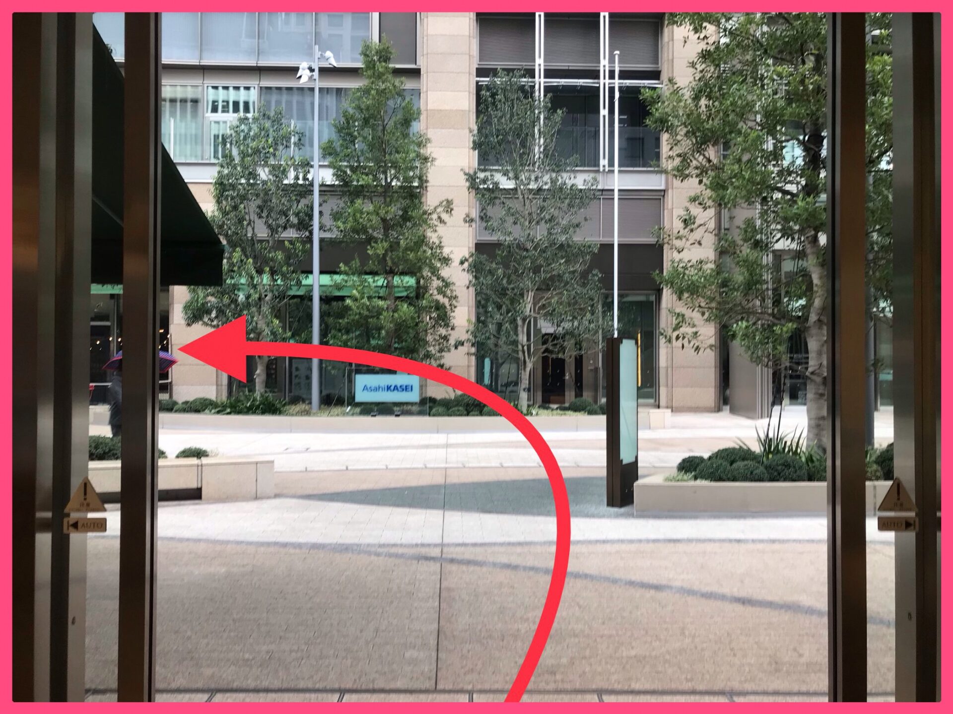 ③正面のビルがミッドタウン日比谷ですので時計回りに建物に沿って進みます。↓