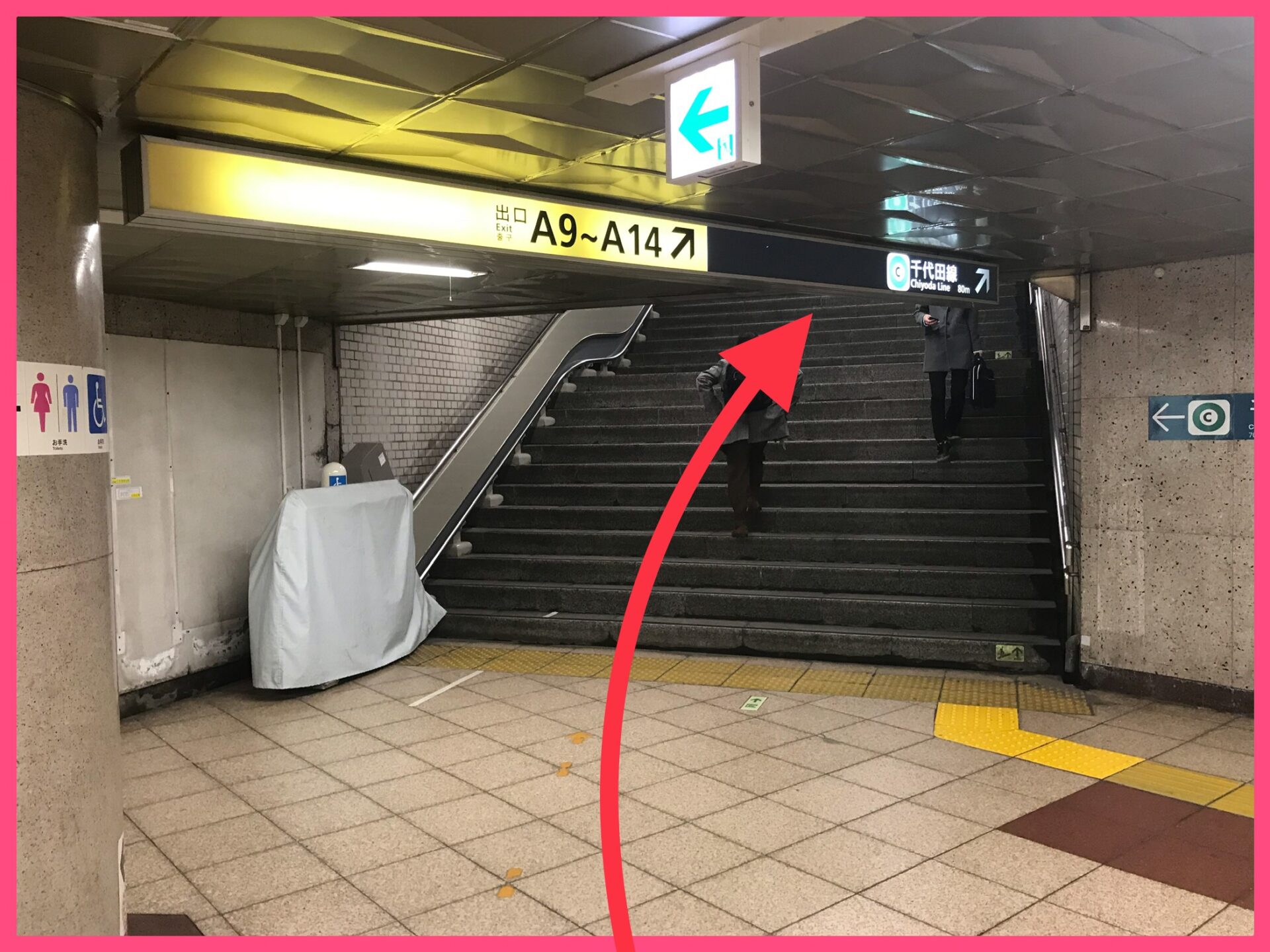 ①都営三田線、東京メトロ日比谷線 日比谷駅を出て「A11」出口方向へ向かいます。↓