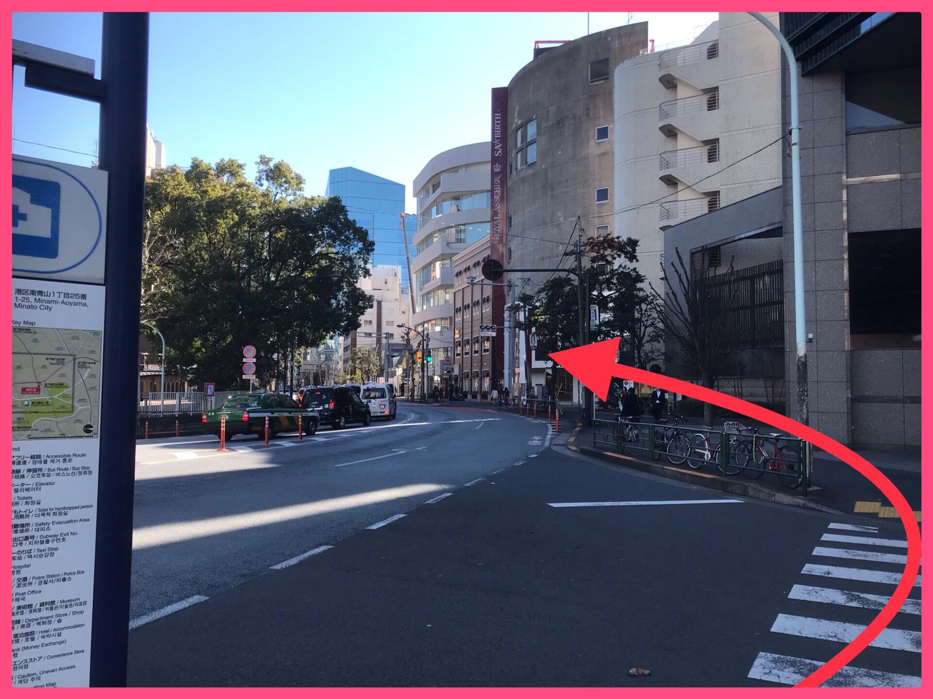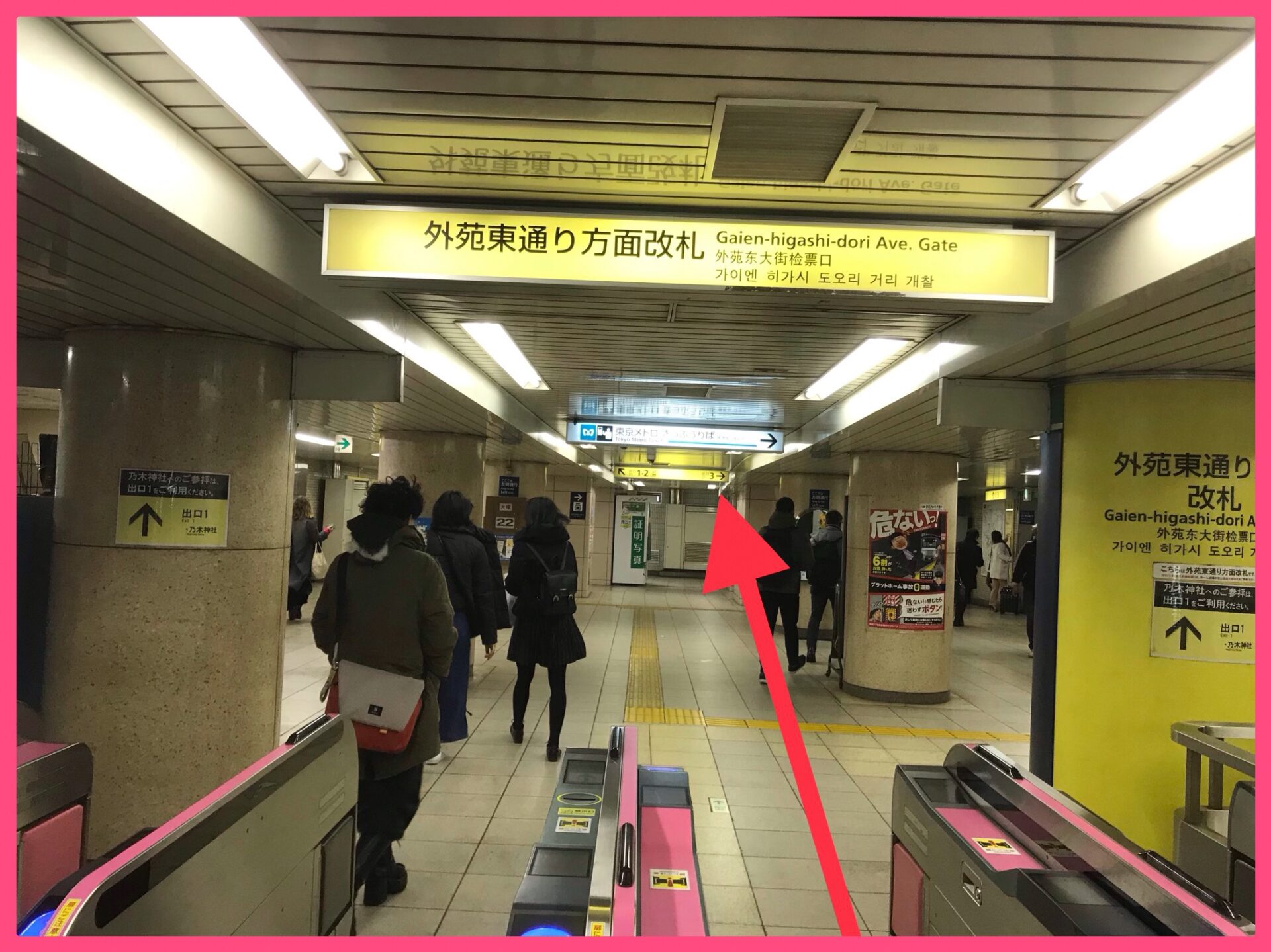 ①東京メトロ千代田線 乃木坂駅 外苑東通り方面改札口を出て「出口3」から地上に出ます。