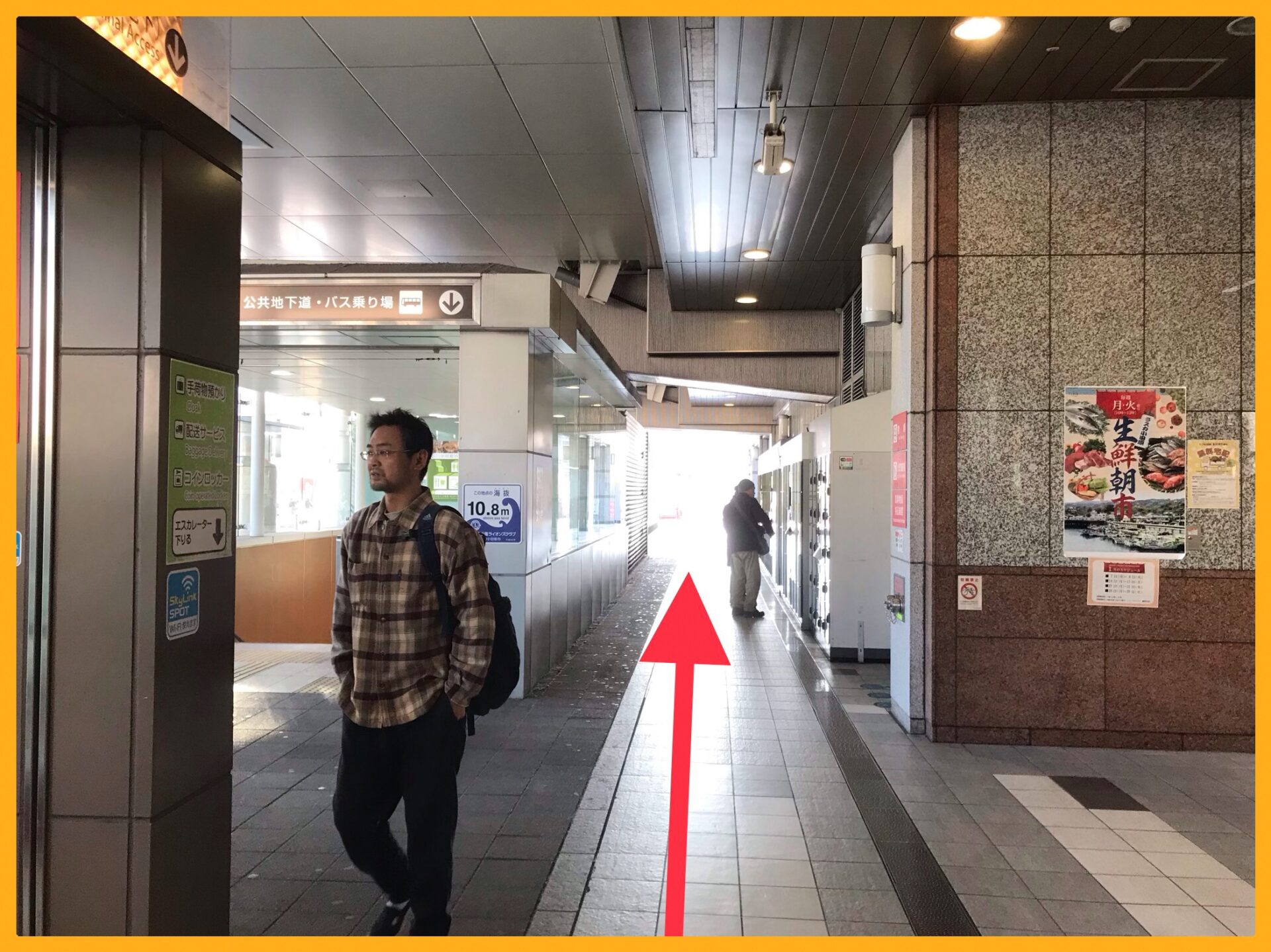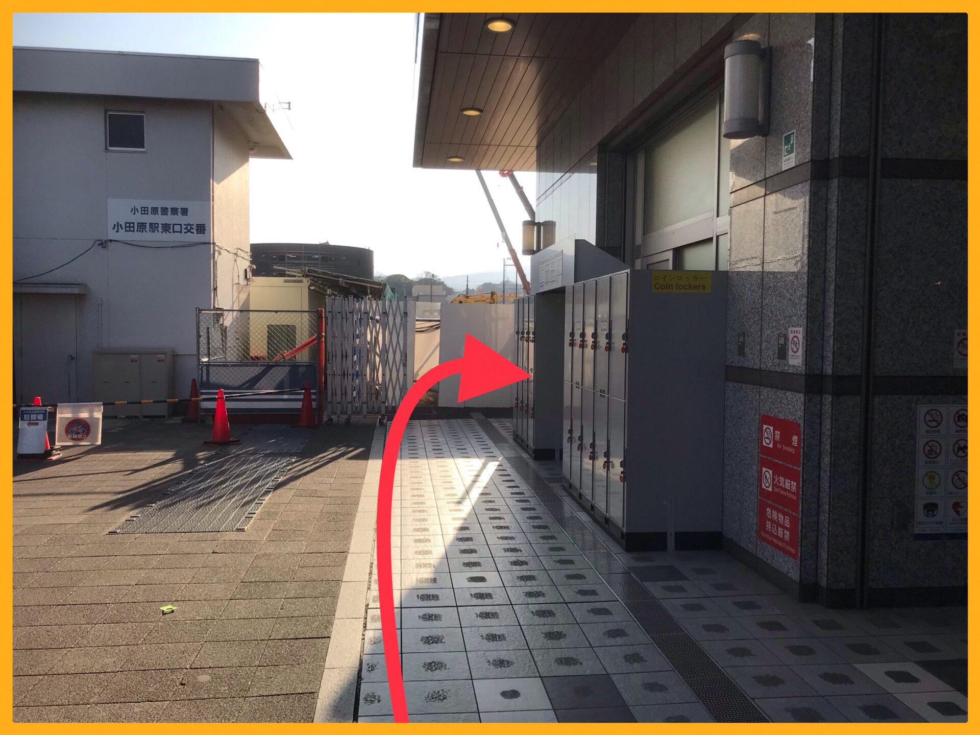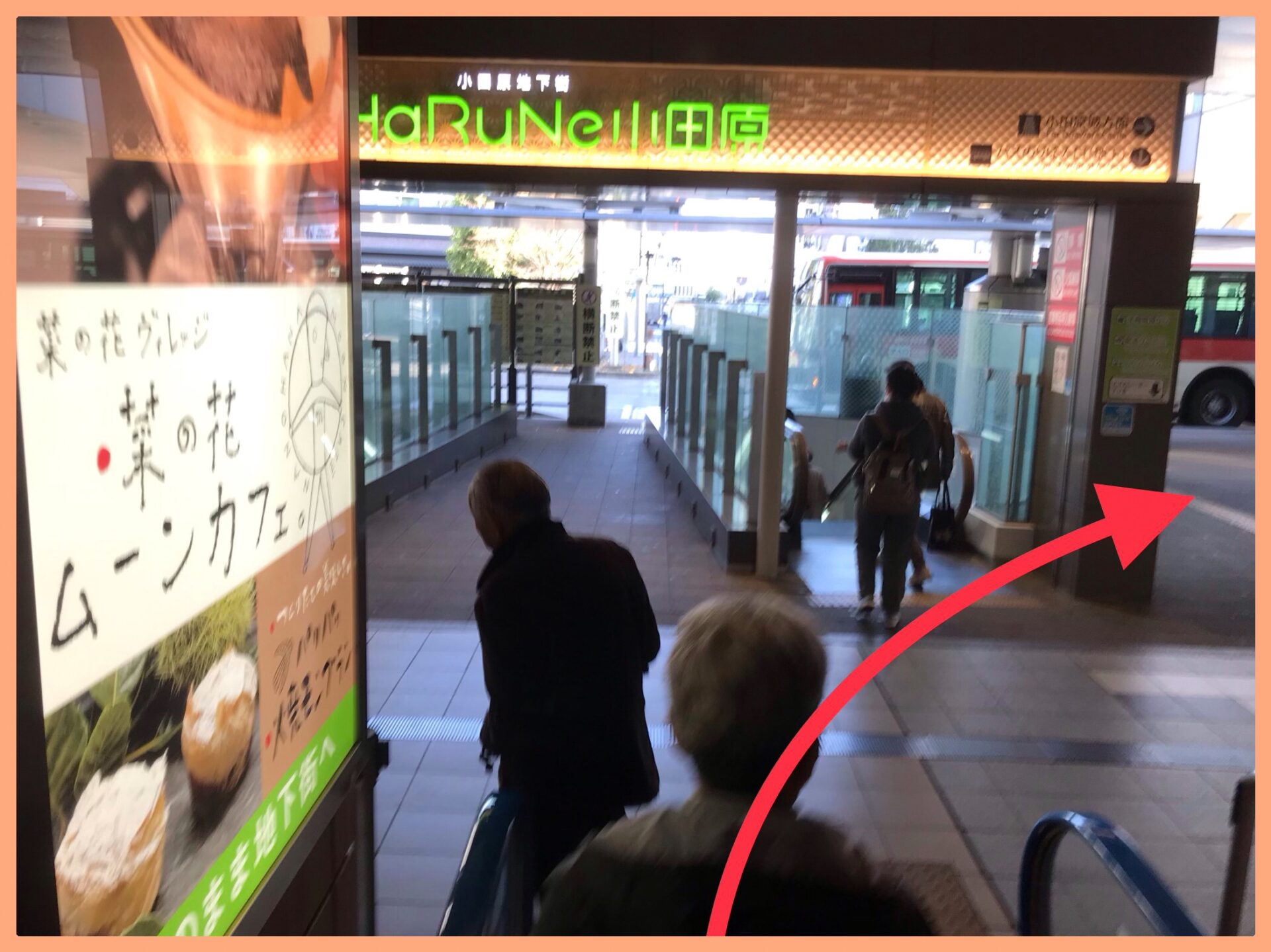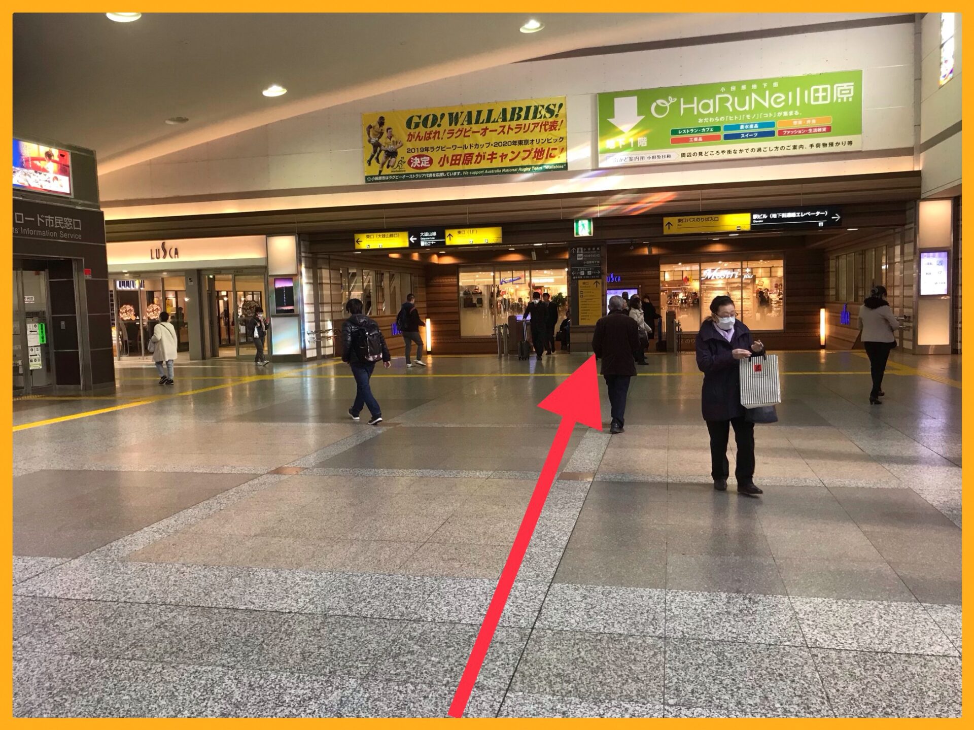 ①JR東海道線小田原駅改札を出て東口に進みます。↓