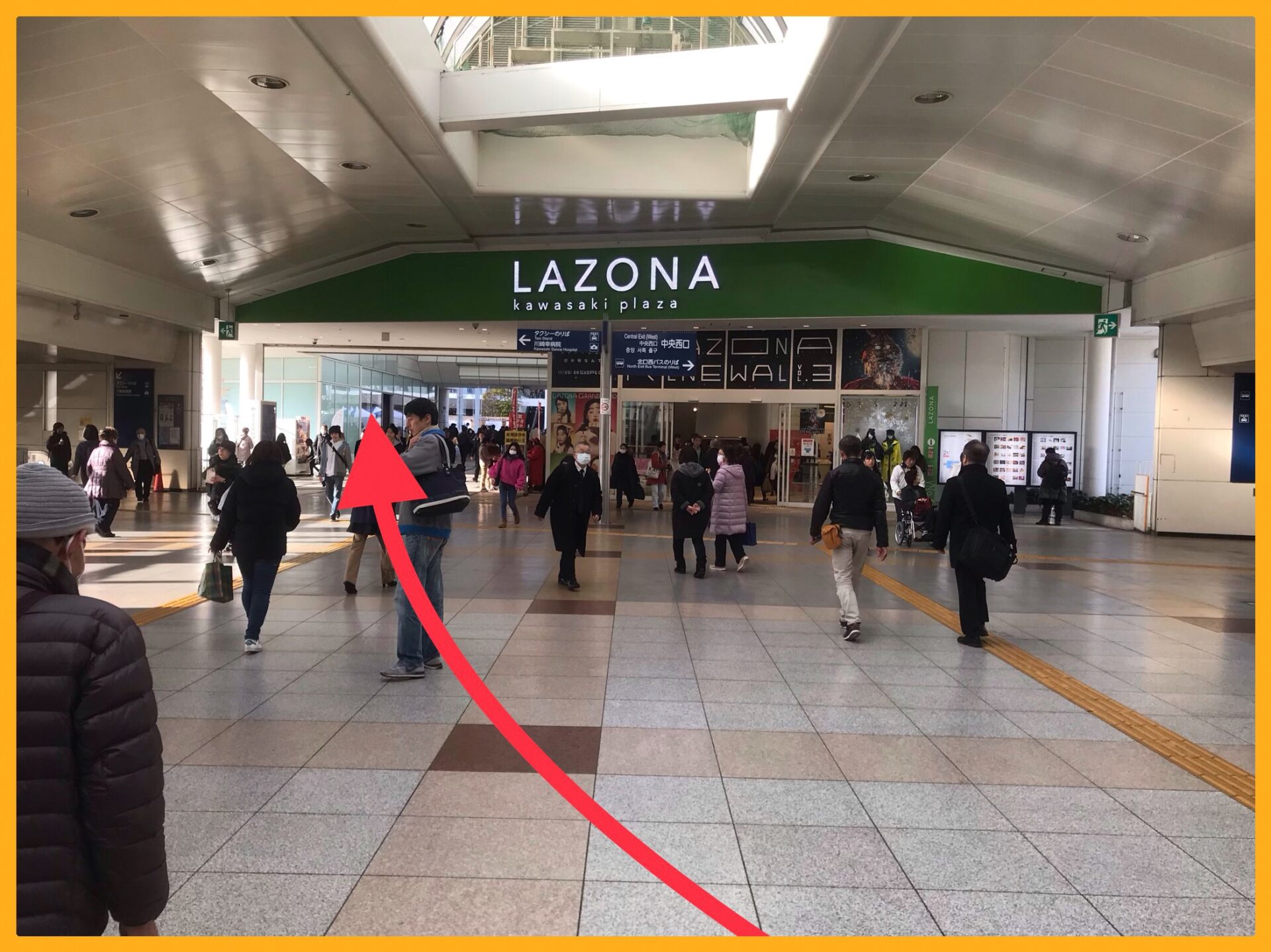 ②正面にラゾーナ川崎が見えます。そのまま入り口まで進みます。