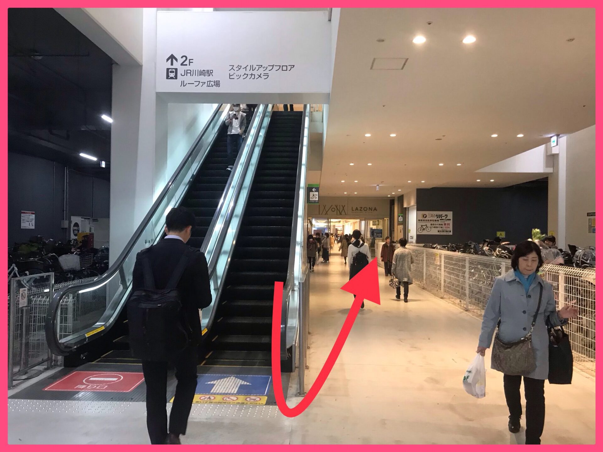 ①JR 川崎駅北(南)を出ると中央通路に出ます。そこから中央西口に向かいます。