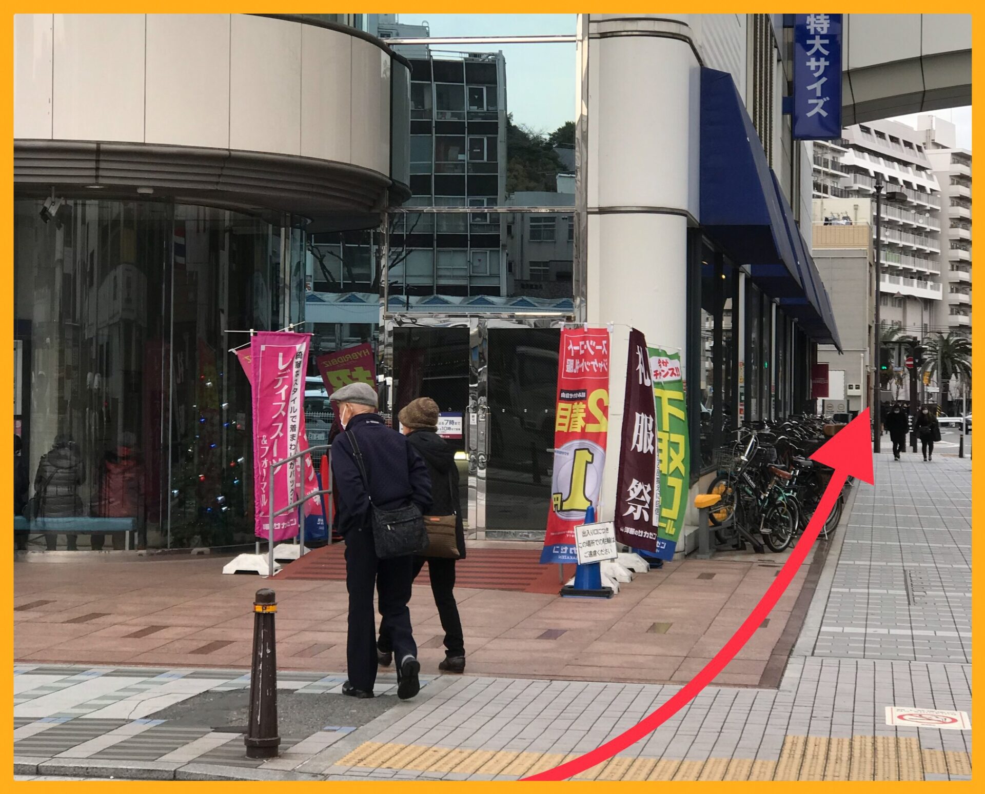 さいか屋 横須賀店 投稿日 2019.02.08 更新日 2025.09.01 著者 prismgate 商業施設 さいか屋 ①京急線 横須賀中央駅東口改札を出てエスカレーターを降ります。↓ ②下に降りたら通りに沿って左に真っ直ぐ進みます。↓ ③ピザ屋の間を右に入って行くとさいか屋横須賀店があります。↓ ④建物に沿って反時計回りに進むと従業員通用口があります。↓ お仕事をお探しの方は LINE登録 人材をお探しの方は 企業担当者さまへ