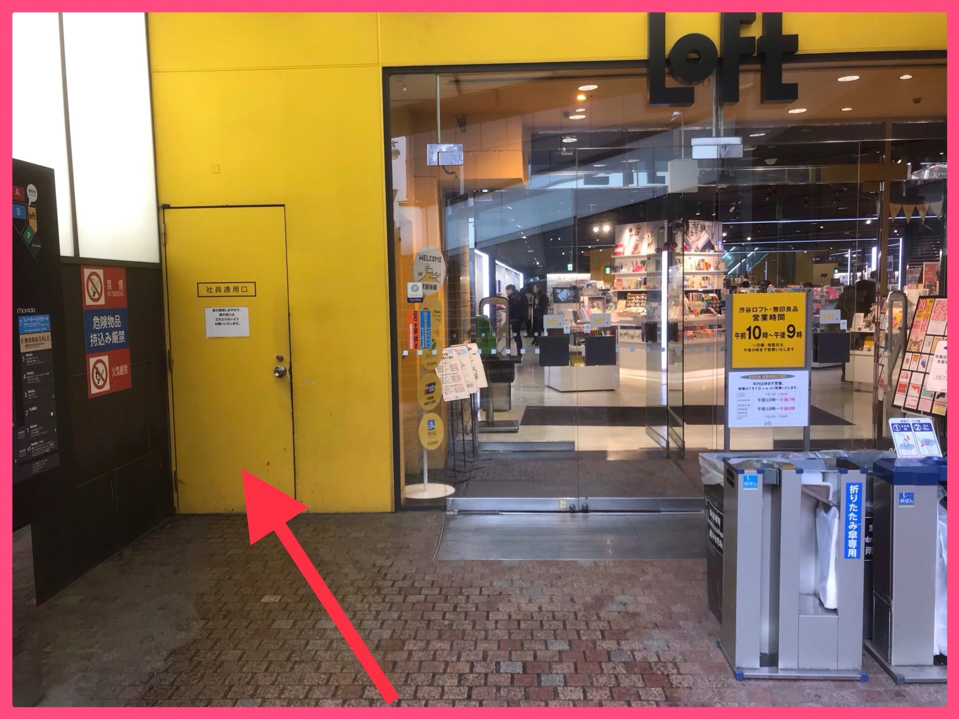 ④正面玄関のある階段を下りると左に西武渋谷店の従業員通用口があります。