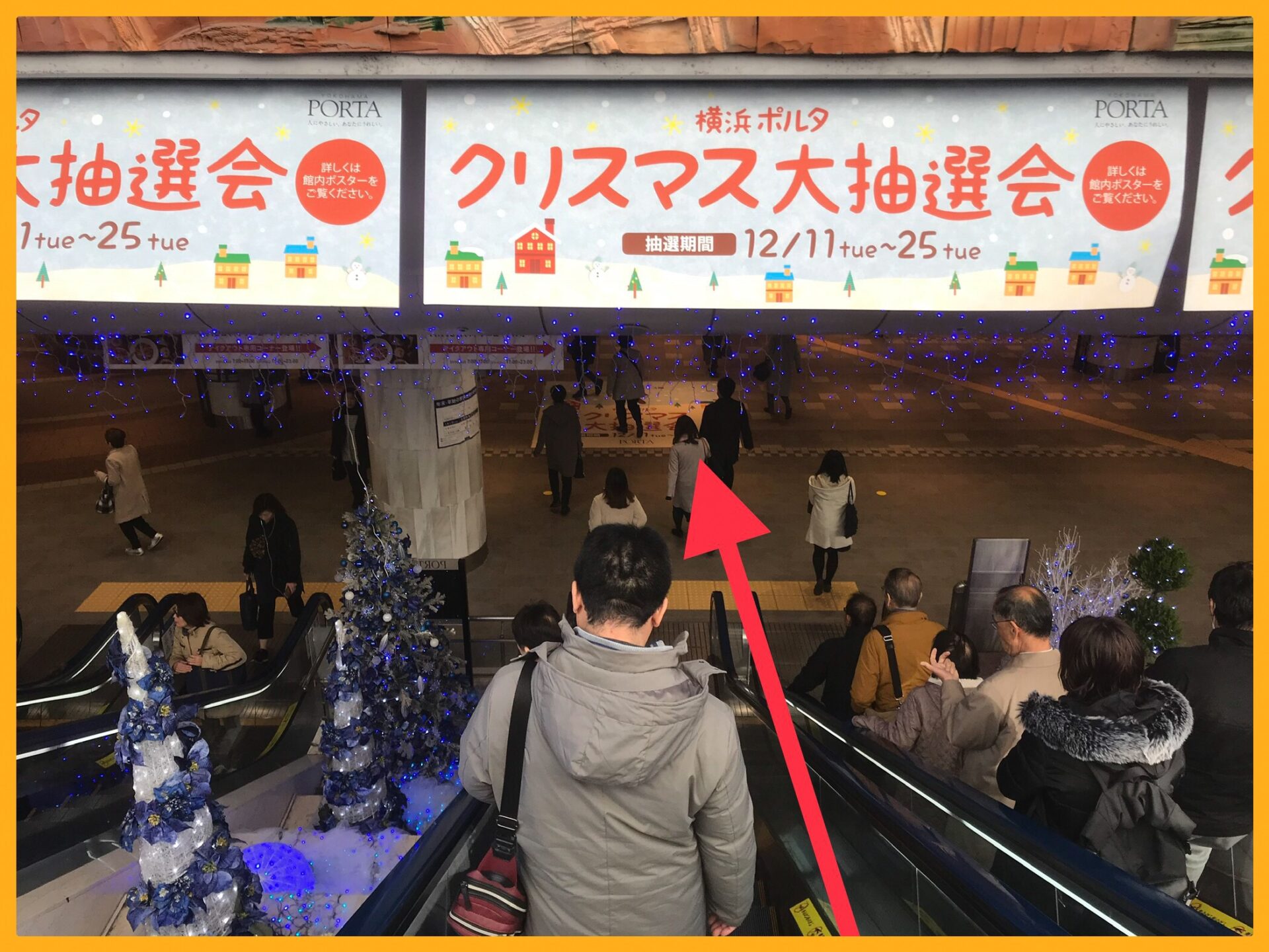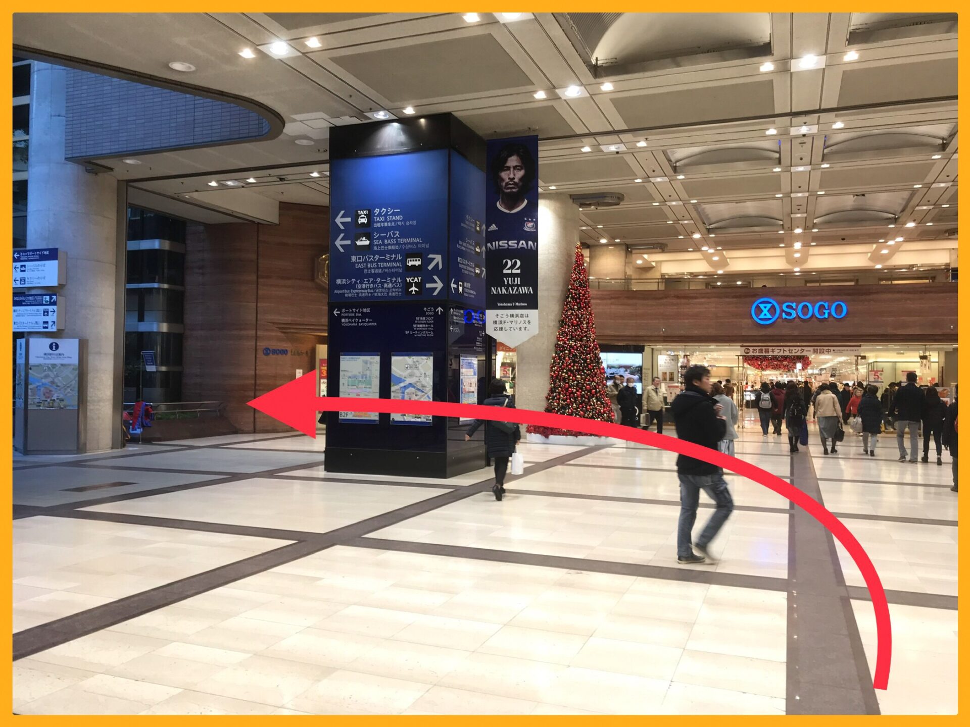 ①JR横浜駅中央改札口、或いは京急本線横浜駅改札口を出て中央コンコースを東口に出ます。