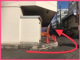 ⑤髙島屋の建物に沿って進むと従業員入口があります。