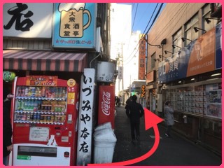 ③ビッグエコーと大衆居酒屋「いずみや本店」の間の路地を進みます。