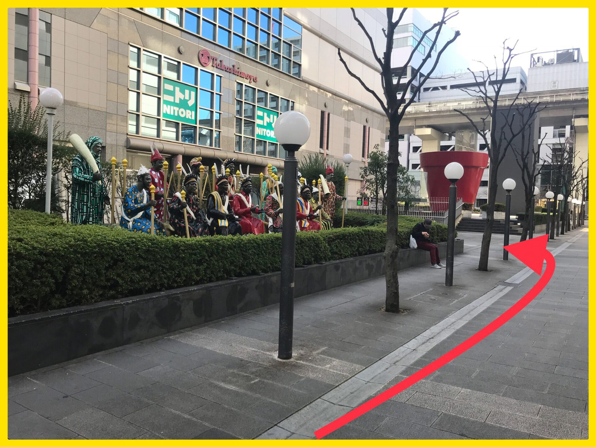 ②左手に民族衣装を着た像がある方へ進みます。