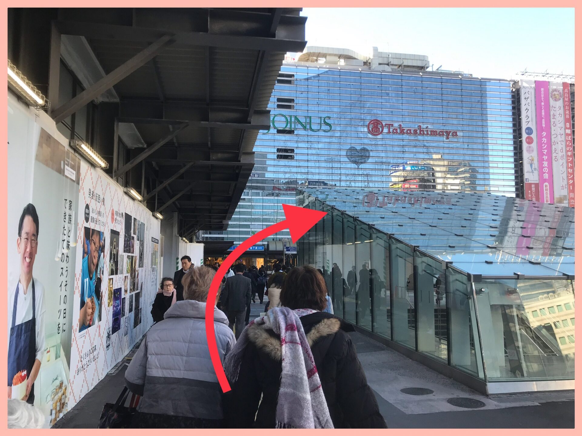 ④そのまま髙島屋の建物に沿って反時計回りに進みます。
