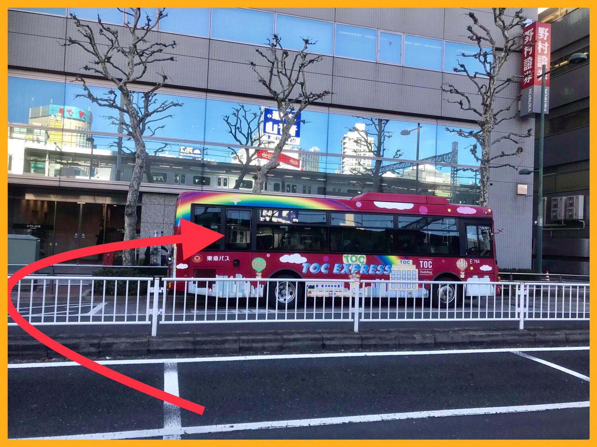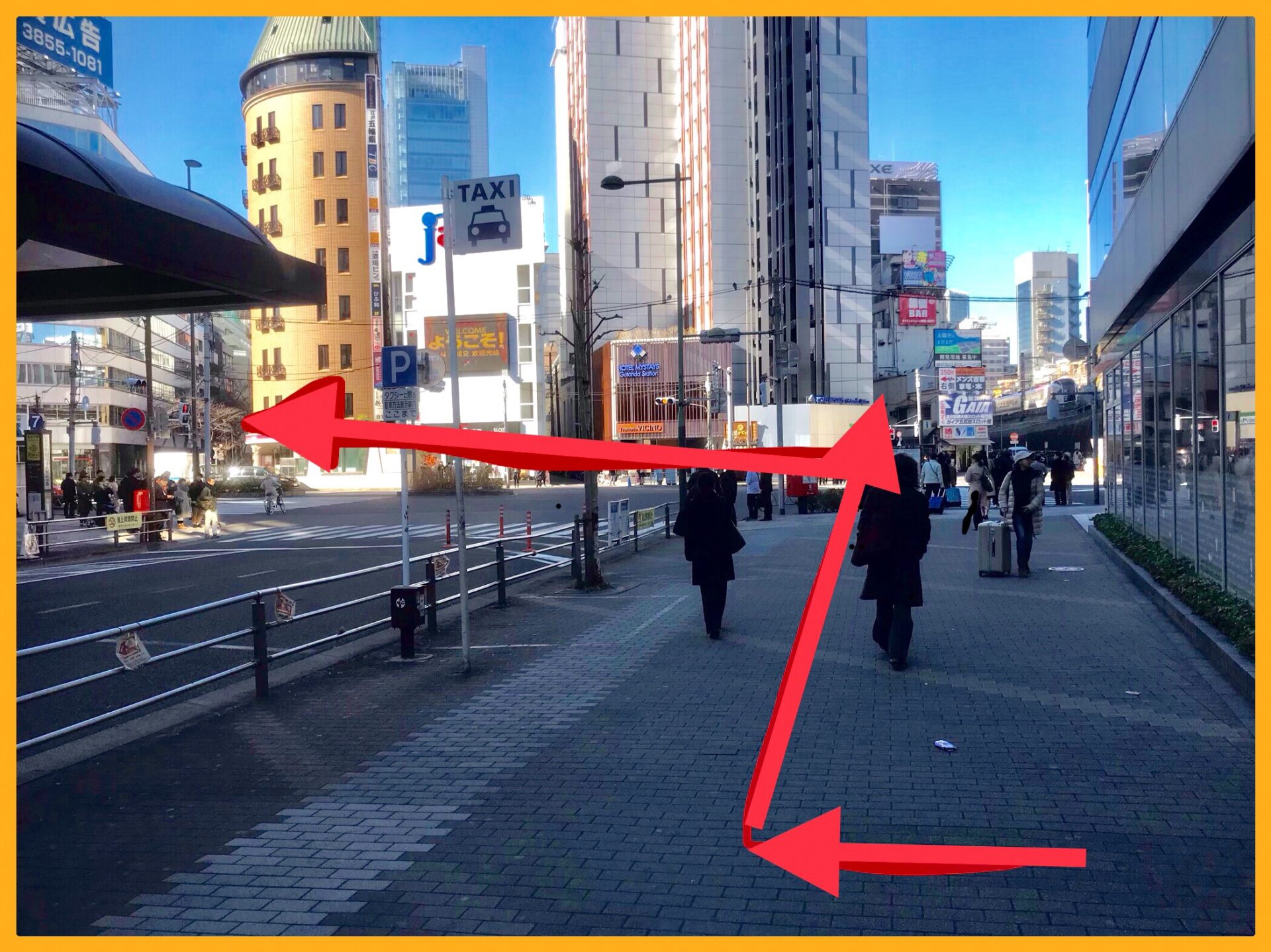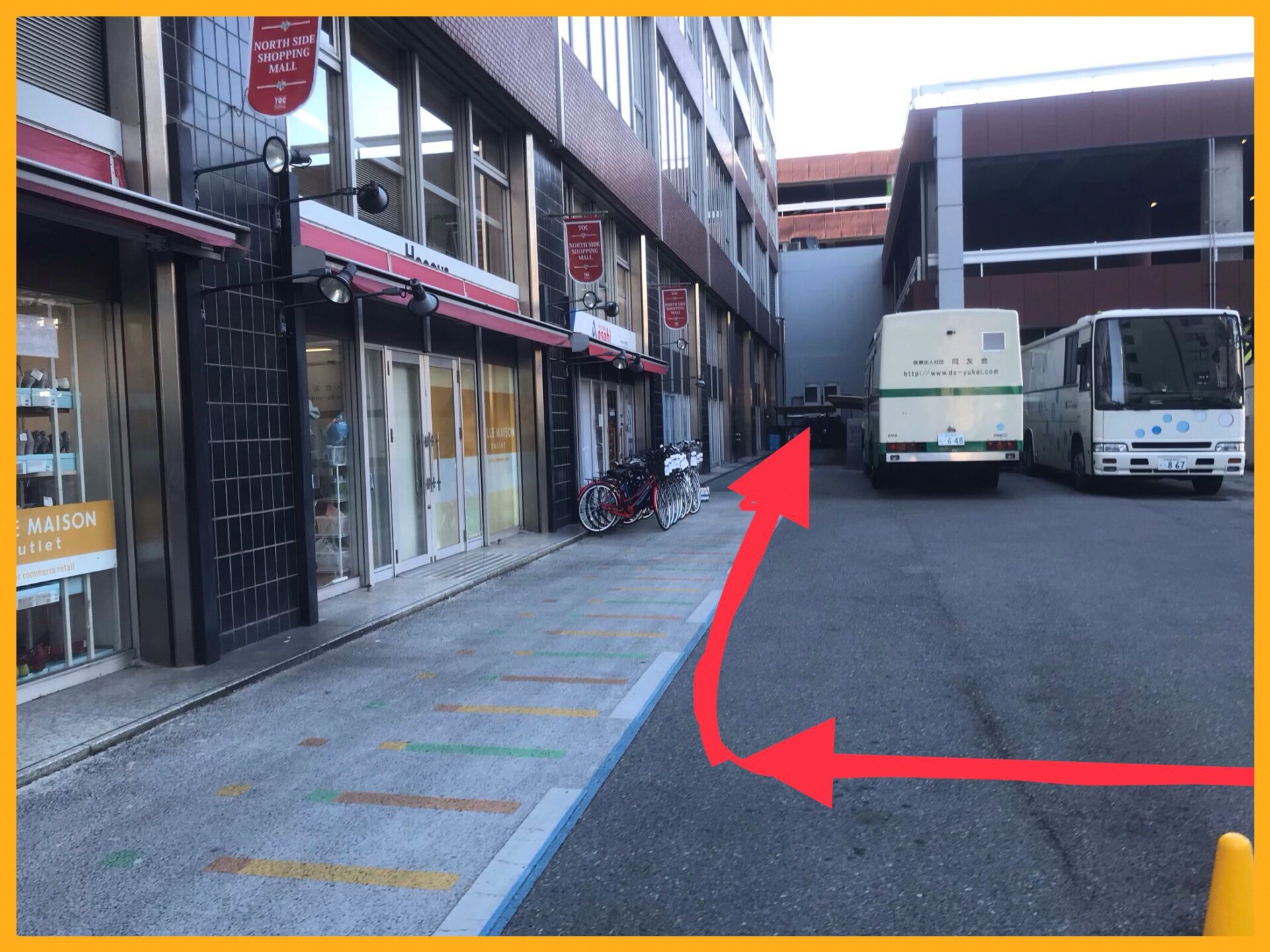 ②西口から出たら左に行くと直通のシャトルバスがあります。右に行くと歩きのコースになります。