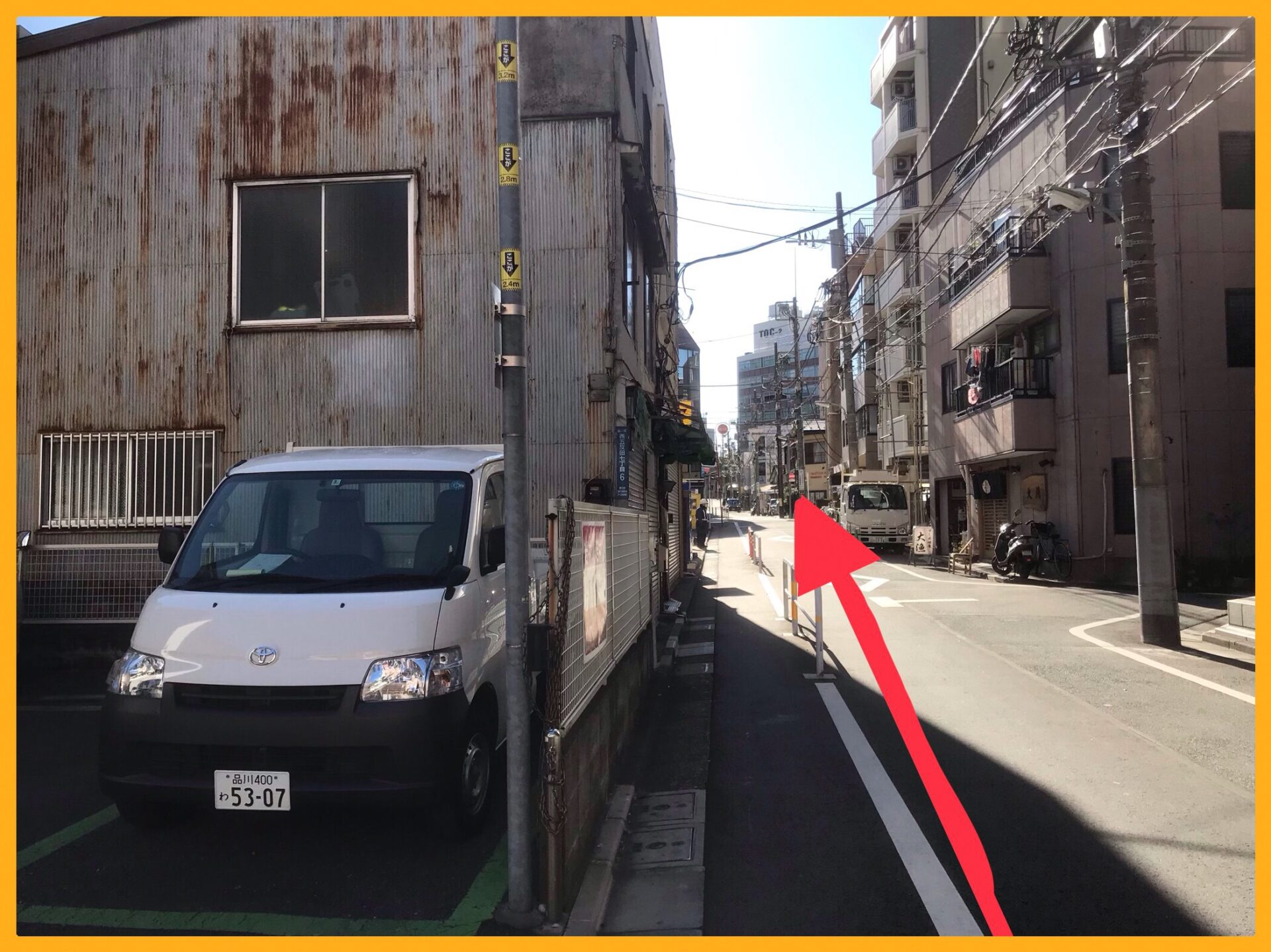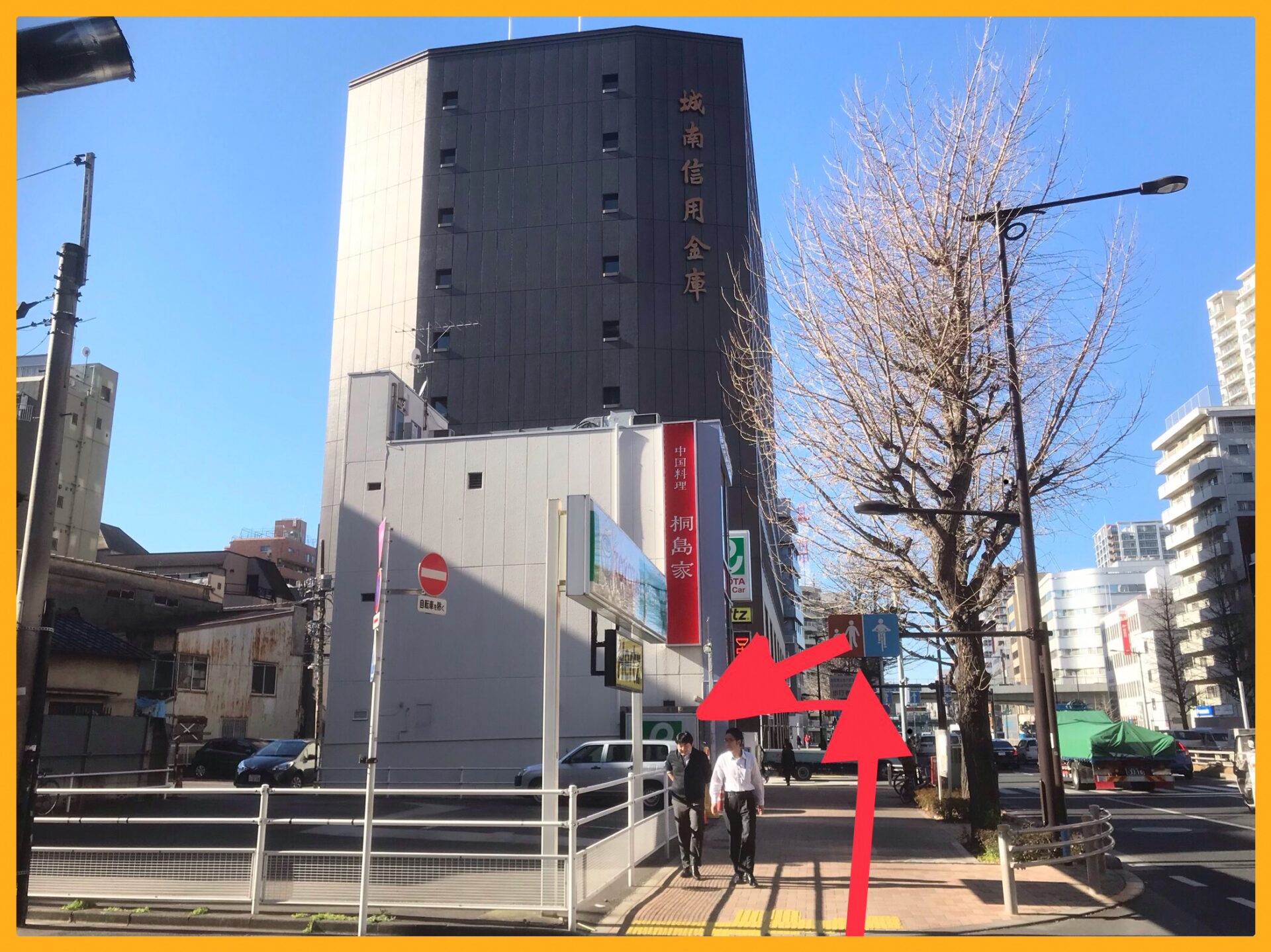 ④真っ直ぐ進み、城南信用金庫の前を左に曲がります。