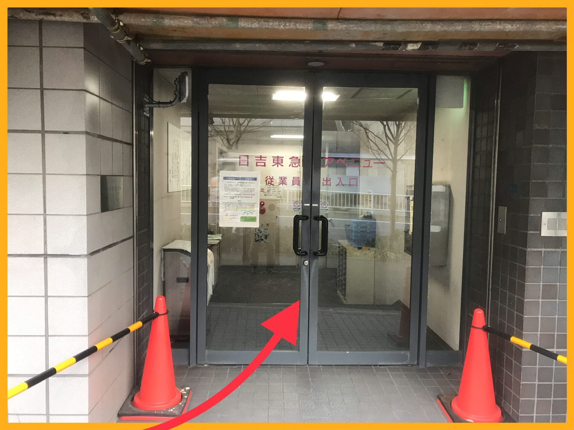 東急アベニュー 日吉店 投稿日 2019.02.04 更新日 2025.09.03 著者 prismgate 商業施設 東急 ①日吉駅改札を出て東口を出ます。 ②横断歩道を渡らず、すぐに左に曲がります。 ③そのまま真っ直ぐ建物に沿って歩くと左手に日吉東急アベニューの従業員通用口があります。 お仕事をお探しの方は LINE登録 人材をお探しの方は 企業担当者さまへ