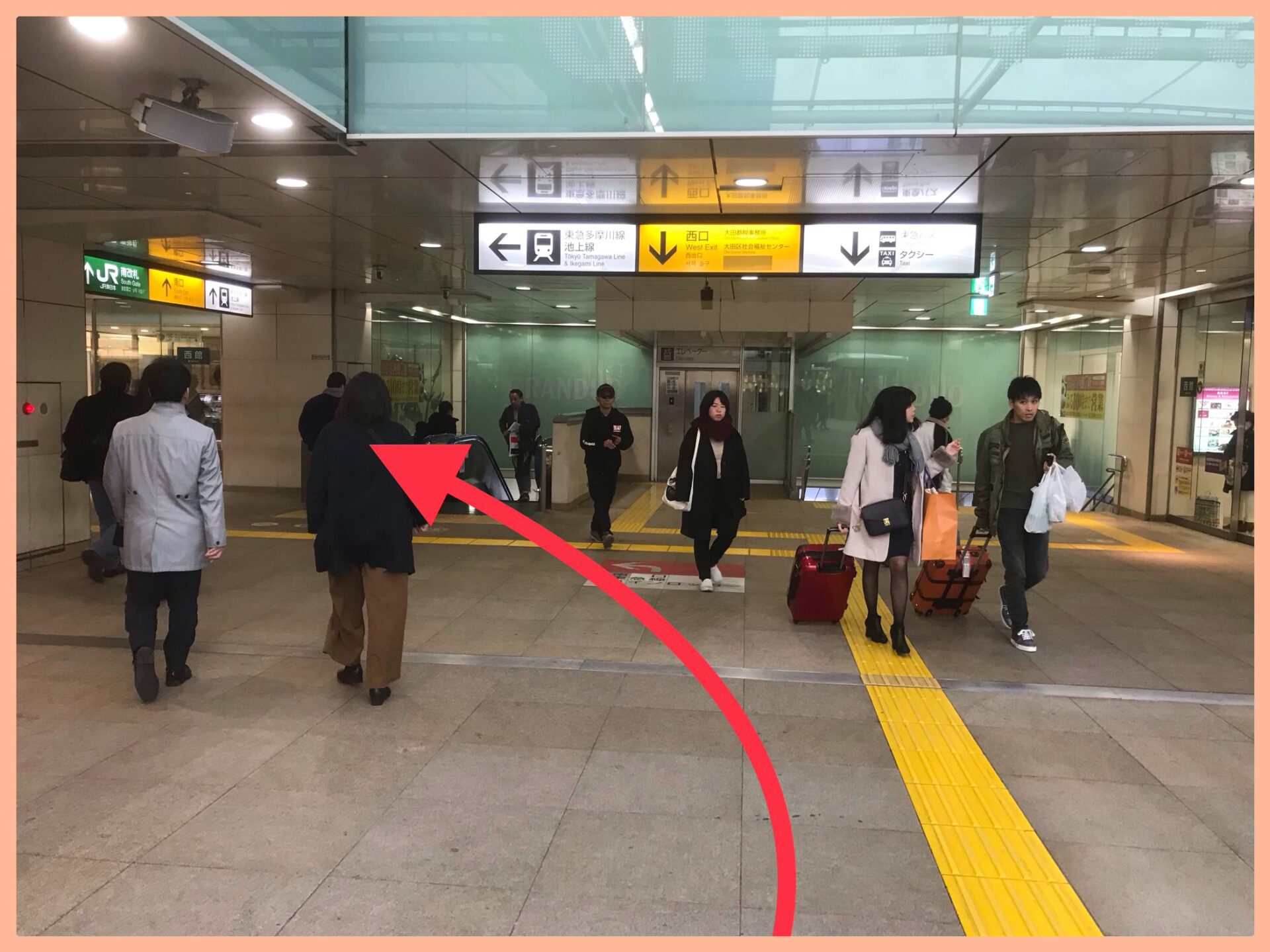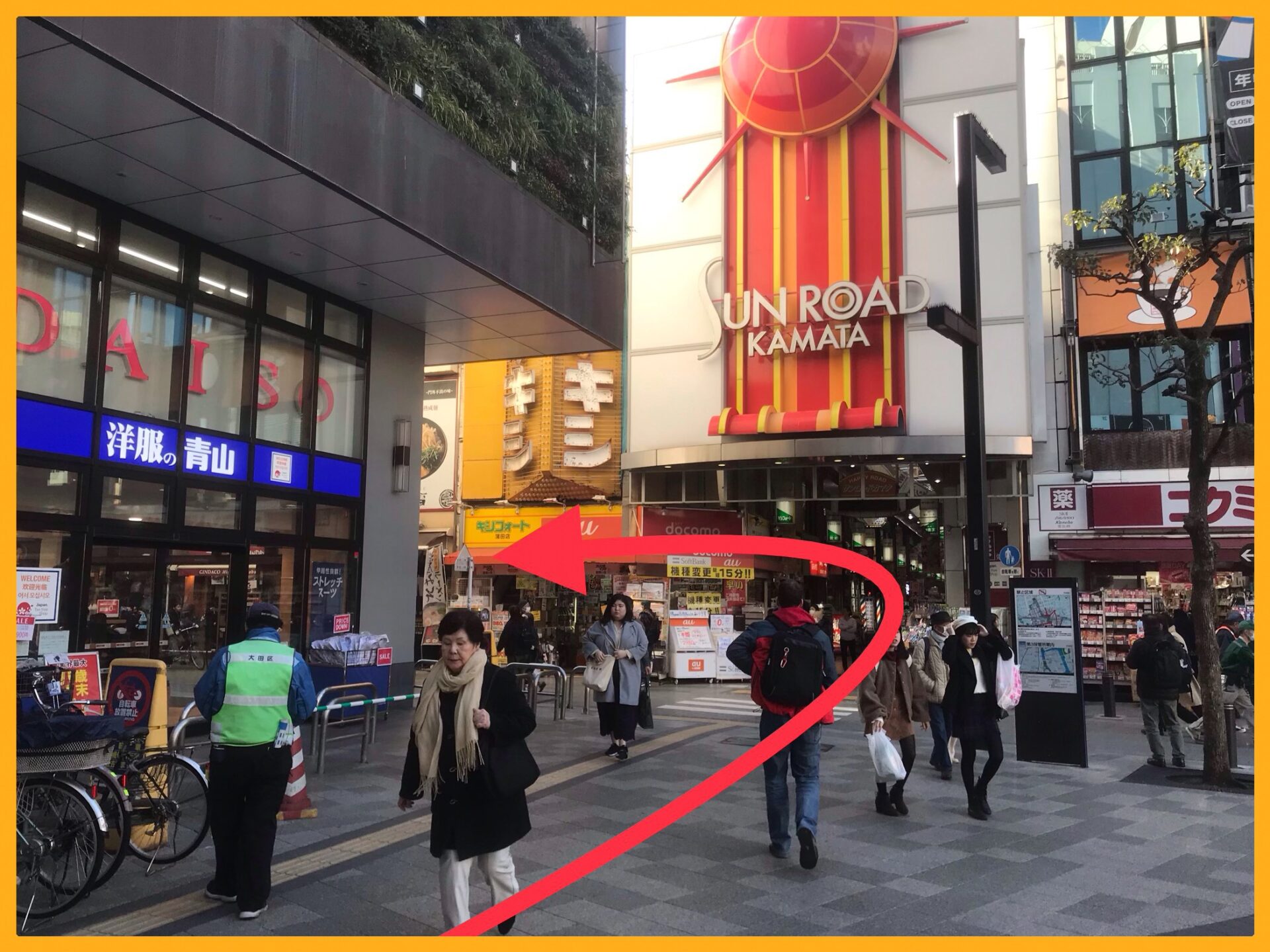 ①JR蒲田駅中央改札口を出て西口方面へ向かいます。
