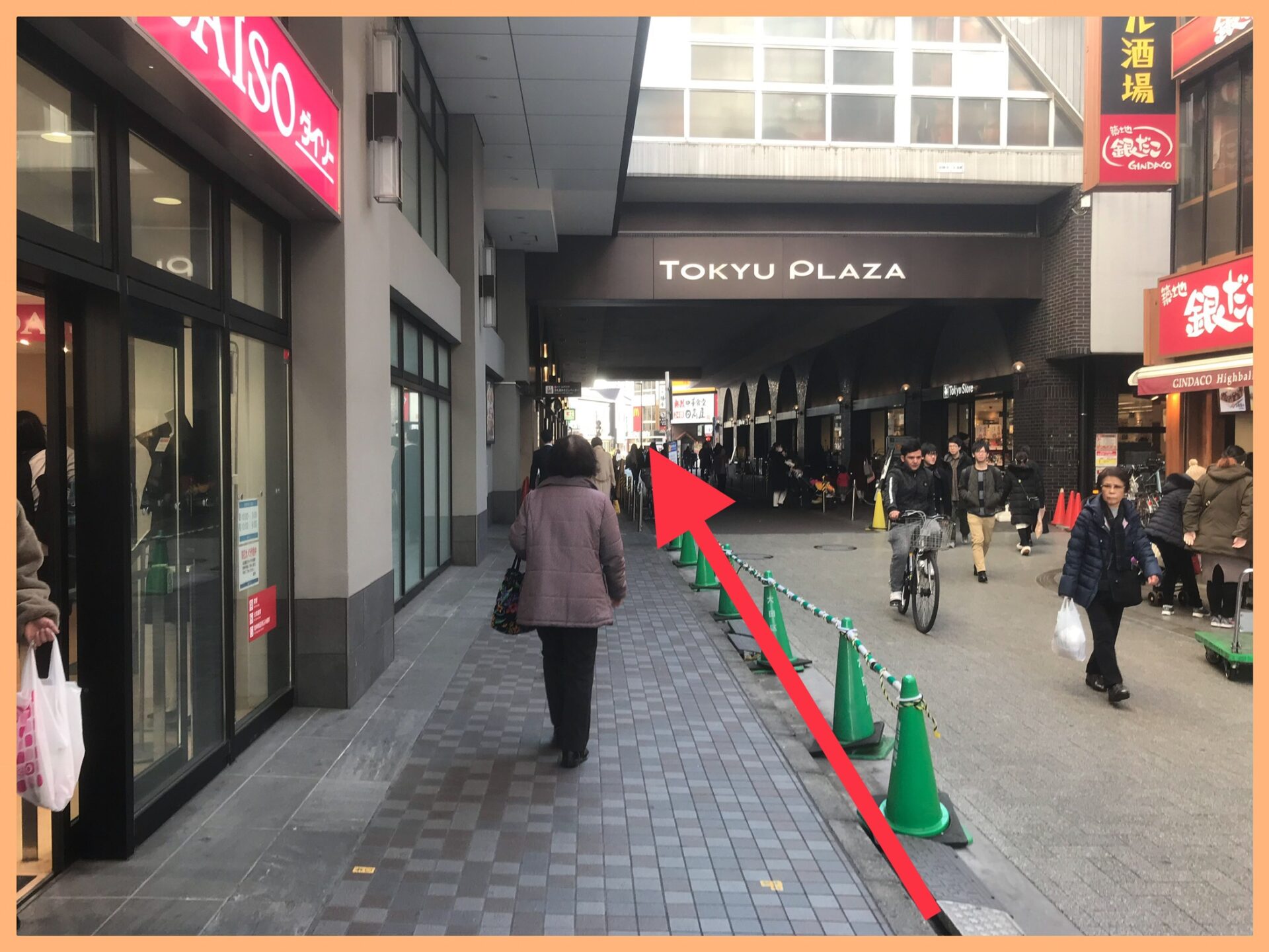 ③外へ出ると左側に東急プラザが見えるので奥まで進み左へ向かいます。